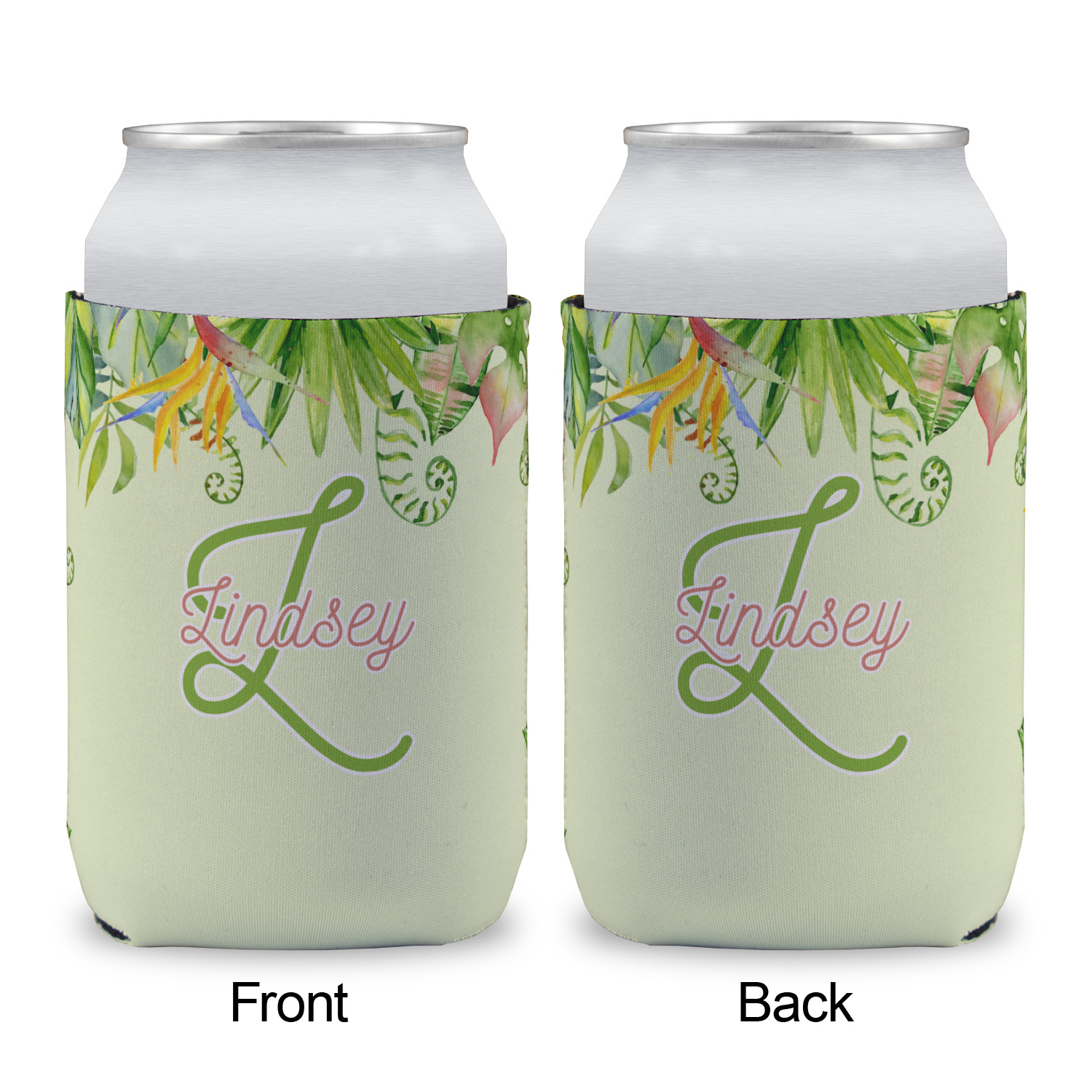 This design has a calming light green background. The foreground is filled with pops of dark green, lime, yellow, and a soft red. The tropical leaves really pop out at you as if they were real. The leaves are in a border or frame sort of formation surrounding a name and initial. This is a gorgeous design that looks a little bit different on each product it is on.