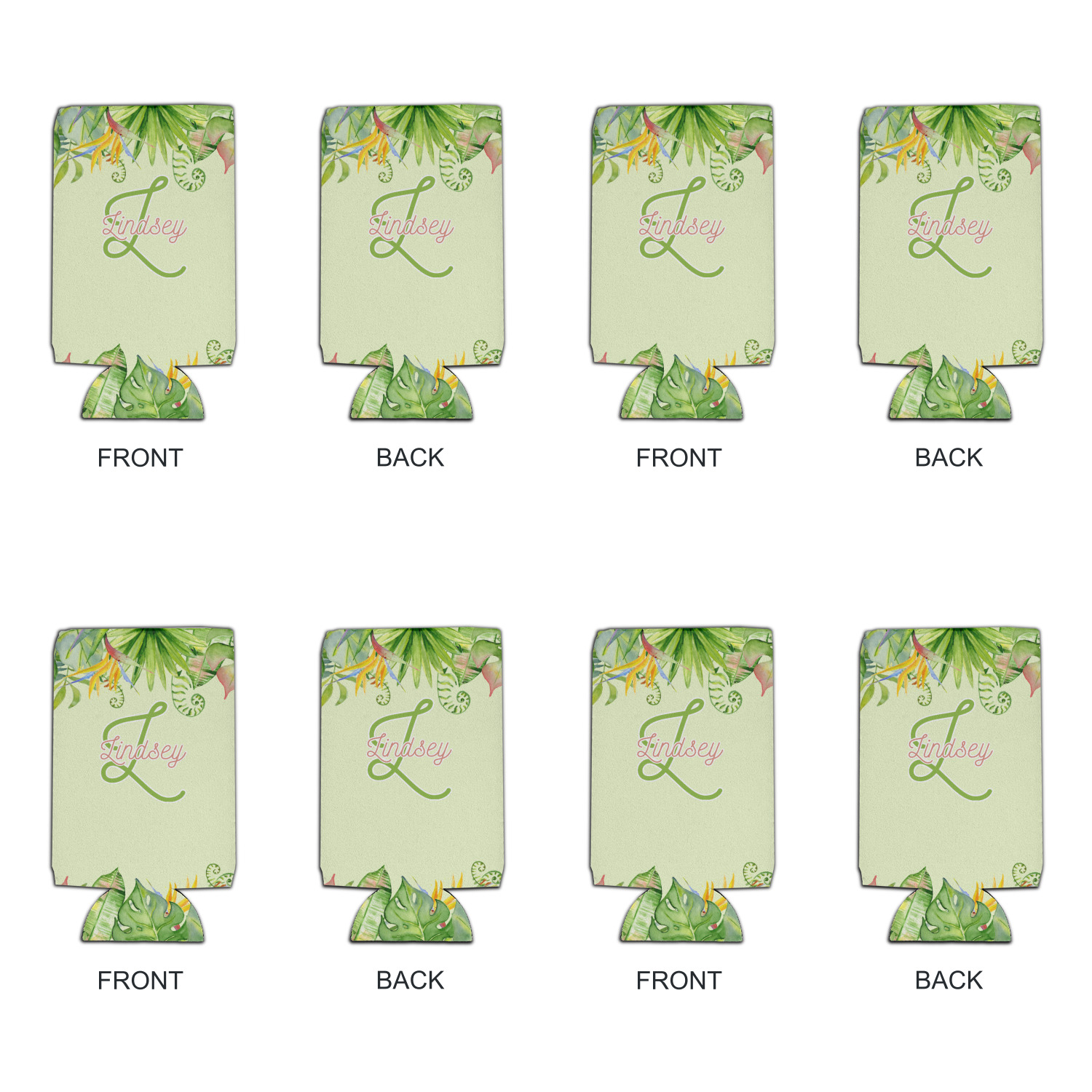 This design has a calming light green background. The foreground is filled with pops of dark green, lime, yellow, and a soft red. The tropical leaves really pop out at you as if they were real. The leaves are in a border or frame sort of formation surrounding a name and initial. This is a gorgeous design that looks a little bit different on each product it is on.