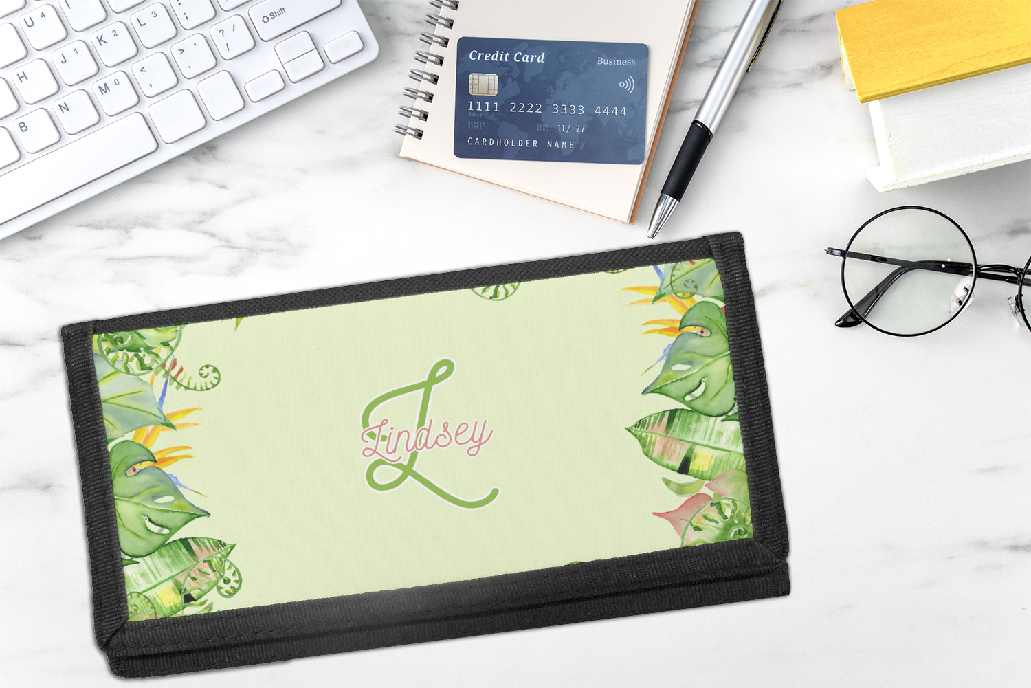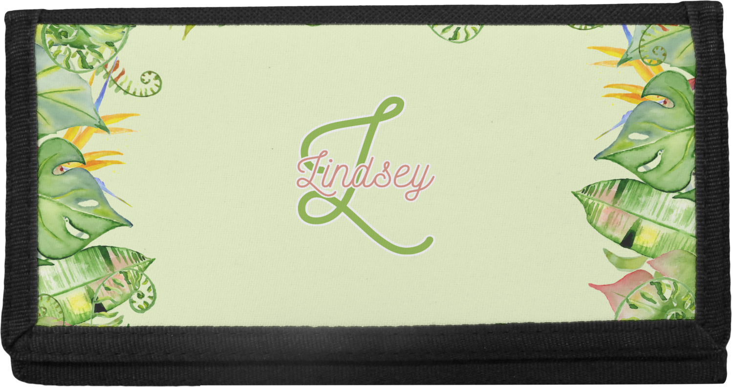 The checkbook cover is made of a durable canvas and the front flap is decorated with a vibrant design of your choosing. With 4 slots for credit cards or IDs, and 2 compartments for your checkbook register, cash, receipts, business cards, and more; this checkbook cover could easily double as a wallet.
