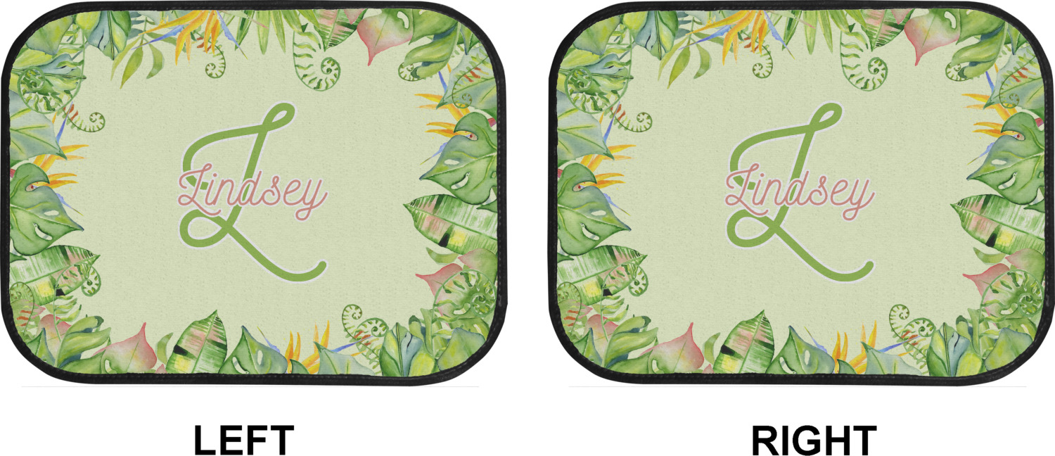 We craft our auto floor mats mats from polyester, apply a black finish to the edges, and lined at the bottom to prevent slippage. These mats protect your floors from grass, mud, and any accidental spills. We display your personalized design on the front face of each mat. The sizes of these car floor liners are standardized to provide a versatile fit for all vehicles. The front rows car mats measure at 17 by 26.5 inches, while the back rows measure at 17 by 13 inches. We sell three packages of car floor mats. You can purchase a pair of front row car mats, a pair of back row car mats, or a set of front row and back row car mats. To make an informed purchase, we recommend measuring the surface area of your car floors.