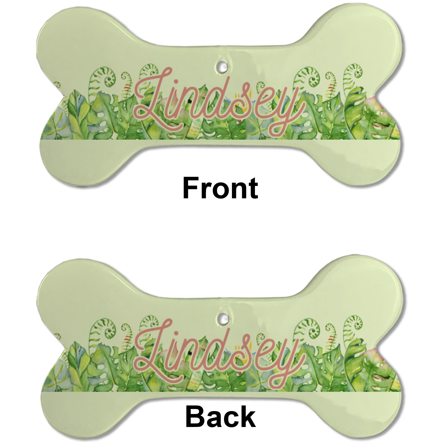 Our dog Christmas ornaments are a ceramic material with a bone-shaped structure hung horizontally. We offer two printing styles to personalize your furry friend's ornament! Choose a one-sided printing, perfect for wall decor, memorial accessory, or doghouse nameplate! Create a double-sided ornament perfect for adorning the Christmas tree. Each dog bone ornament is approximately 4.75" x 2.25" and is printed here in the USA.