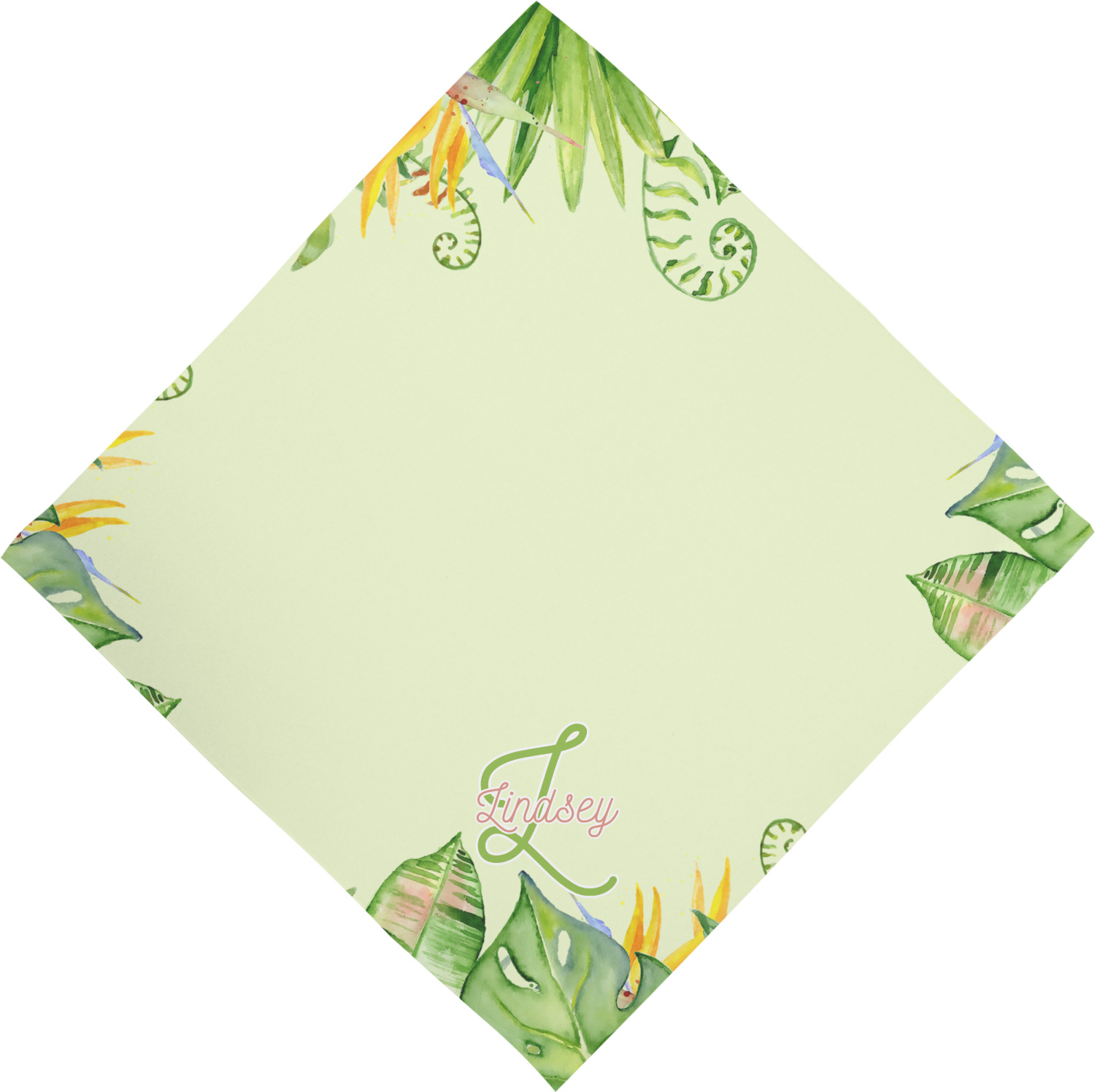 This beautiful pet bandana really is the perfect accessory. It is made from a silky feeling polyester and measures at approximately 23" x 23". Your personalization will be printed on a diagonal, so that you are able to read the personalization when folded into a triangle. This bandana fits best on large dogs, but can be folded smaller if there is no personalized text to fit smaller pets.