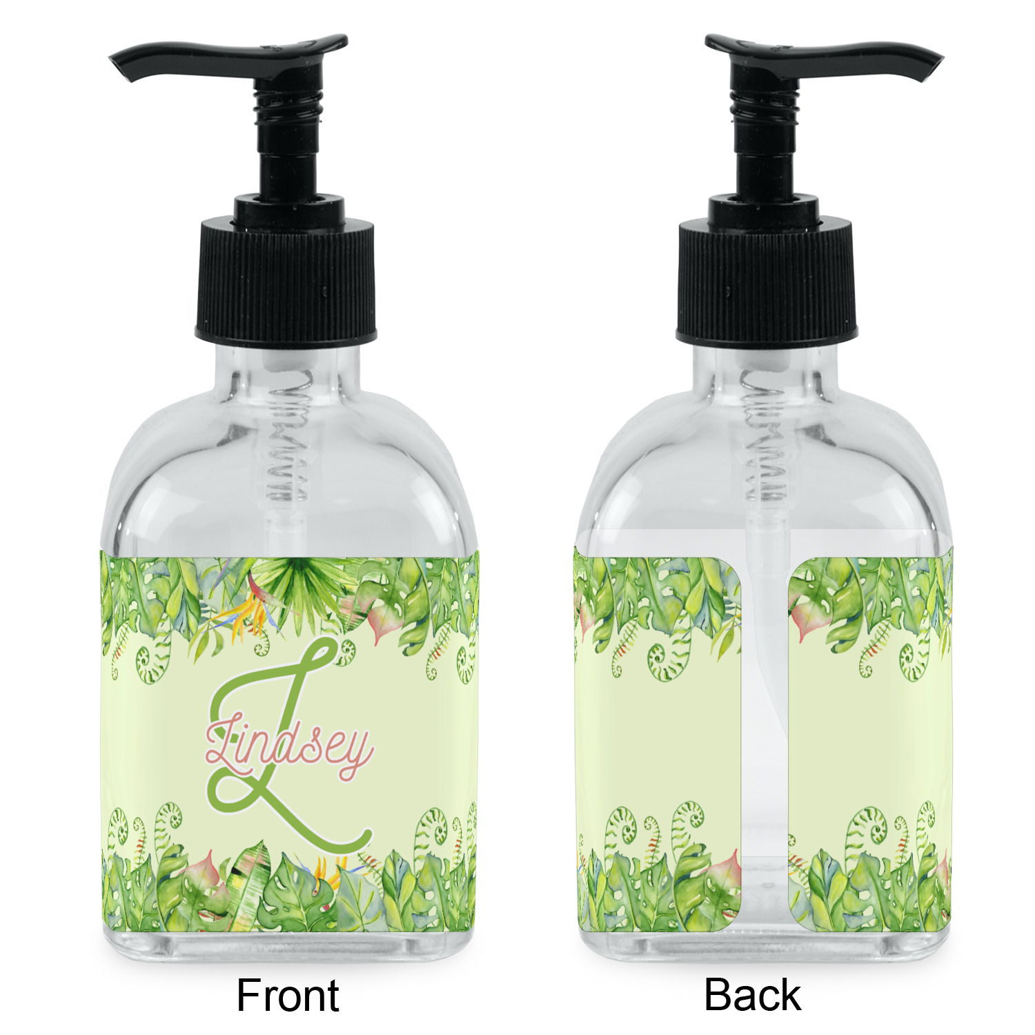 Crafted from a high-quality glass, these soap dispensers and lotion dispensers are durable and robust, while still looking elegant. They are sold with black pumps. Each soap dispenser pump measures at 6.5 by 2.25 inches. On these soap pumps, we display your customized design on a personalized vinyl adhesive on three sides. That way, you can judge how much liquid is in the bottles from the back.