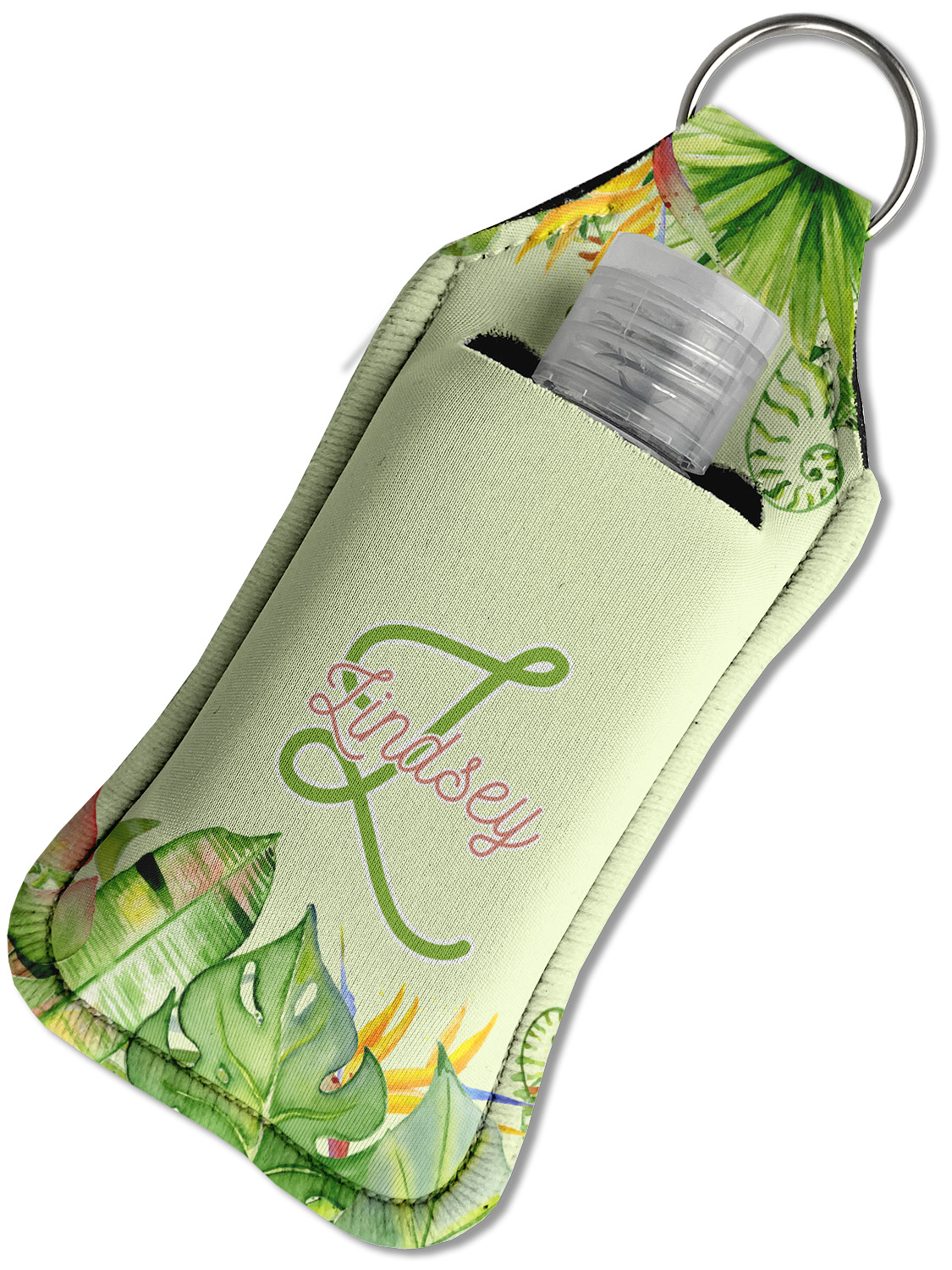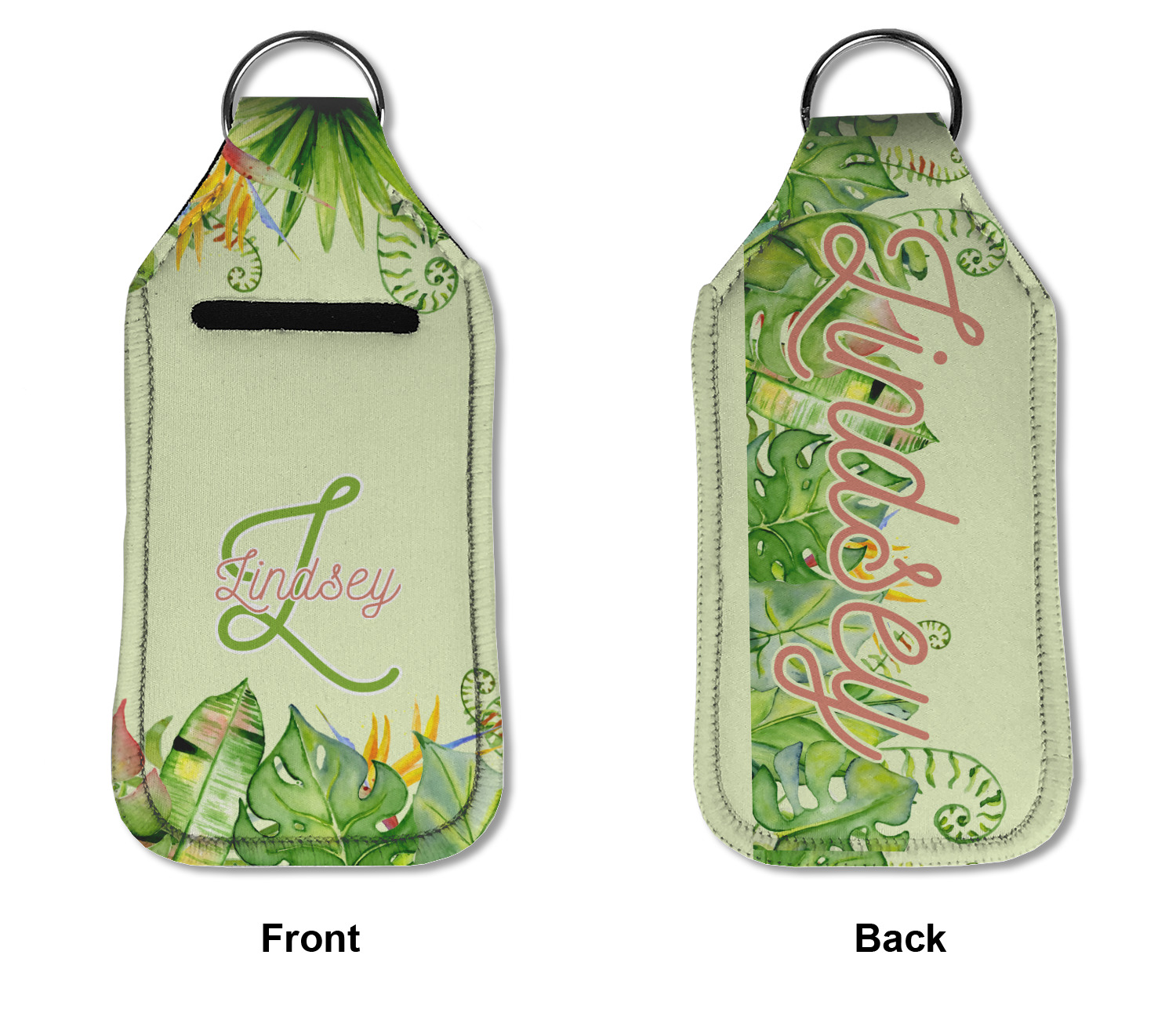 Each hand sanitizer holder comes with its own empty travel-sized, refillable hand sanitizer sure to fit snug in your customized sanitizer case! Our hand sanitizer cases are a durable, yet soft neoprene material sure to last any daily activities or travel agenda. Customize and personalize a hand sanitizer bottle holder with one of our two sizes - small (4.25" x 2.25") or large (5.5" x 2.5"). Each travel sanitizer holder comes with a keyring for attachment on bags, keys, or more!