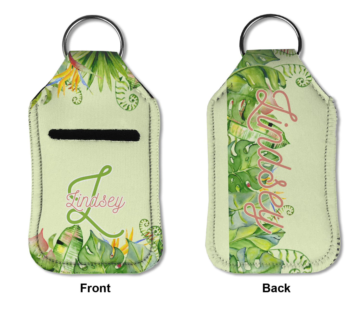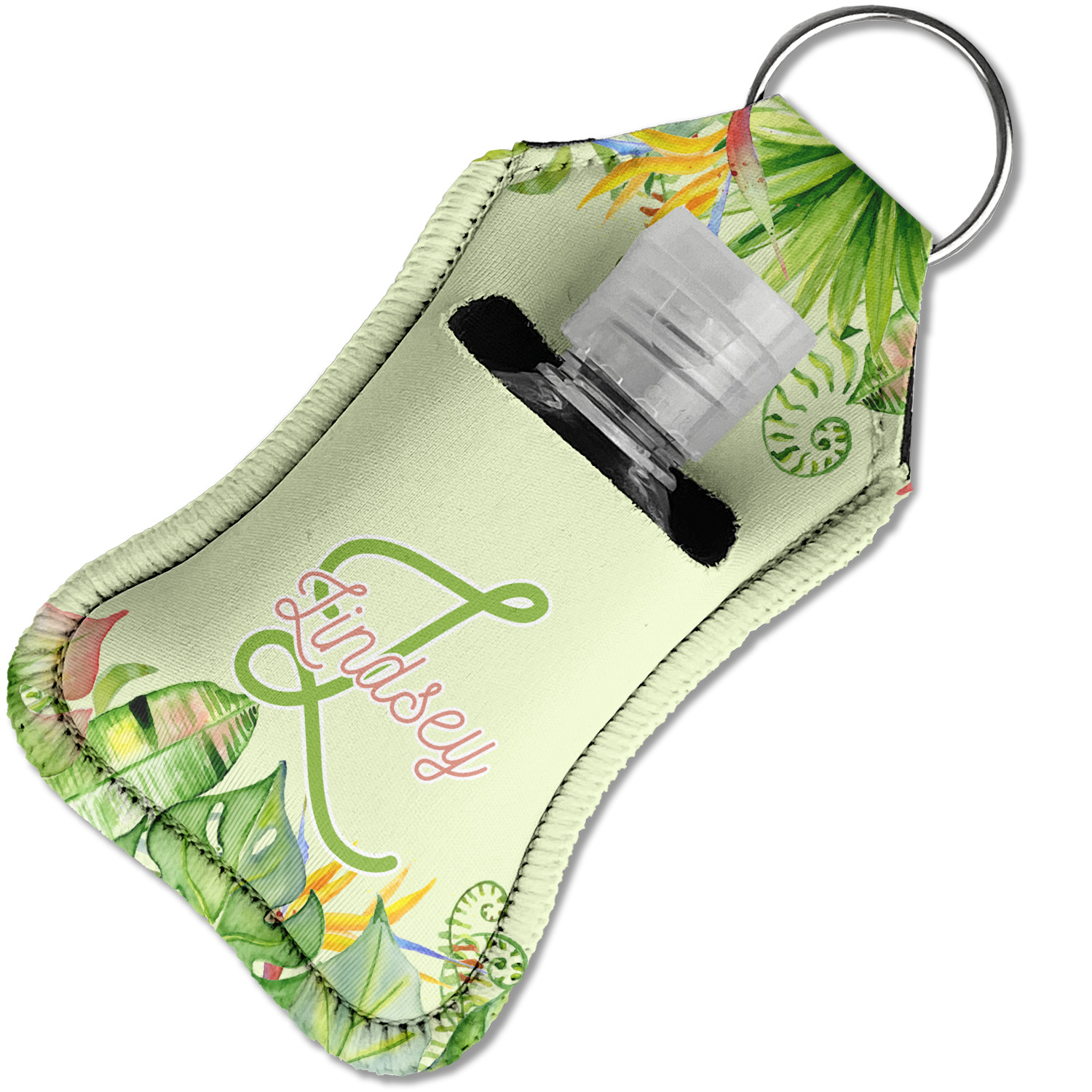 Each hand sanitizer holder comes with its own empty travel-sized, refillable hand sanitizer sure to fit snug in your customized sanitizer case! Our hand sanitizer cases are a durable, yet soft neoprene material sure to last any daily activities or travel agenda. Customize and personalize a hand sanitizer bottle holder with one of our two sizes - small (4.25" x 2.25") or large (5.5" x 2.5"). Each travel sanitizer holder comes with a keyring for attachment on bags, keys, or more!