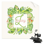 This design has a calming light green background. The foreground is filled with pops of dark green, lime, yellow, and a soft red. The tropical leaves really pop out at you as if they were real. The leaves are in a border or frame sort of formation surrounding a name and initial. This is a gorgeous design that looks a little bit different on each product it is on.