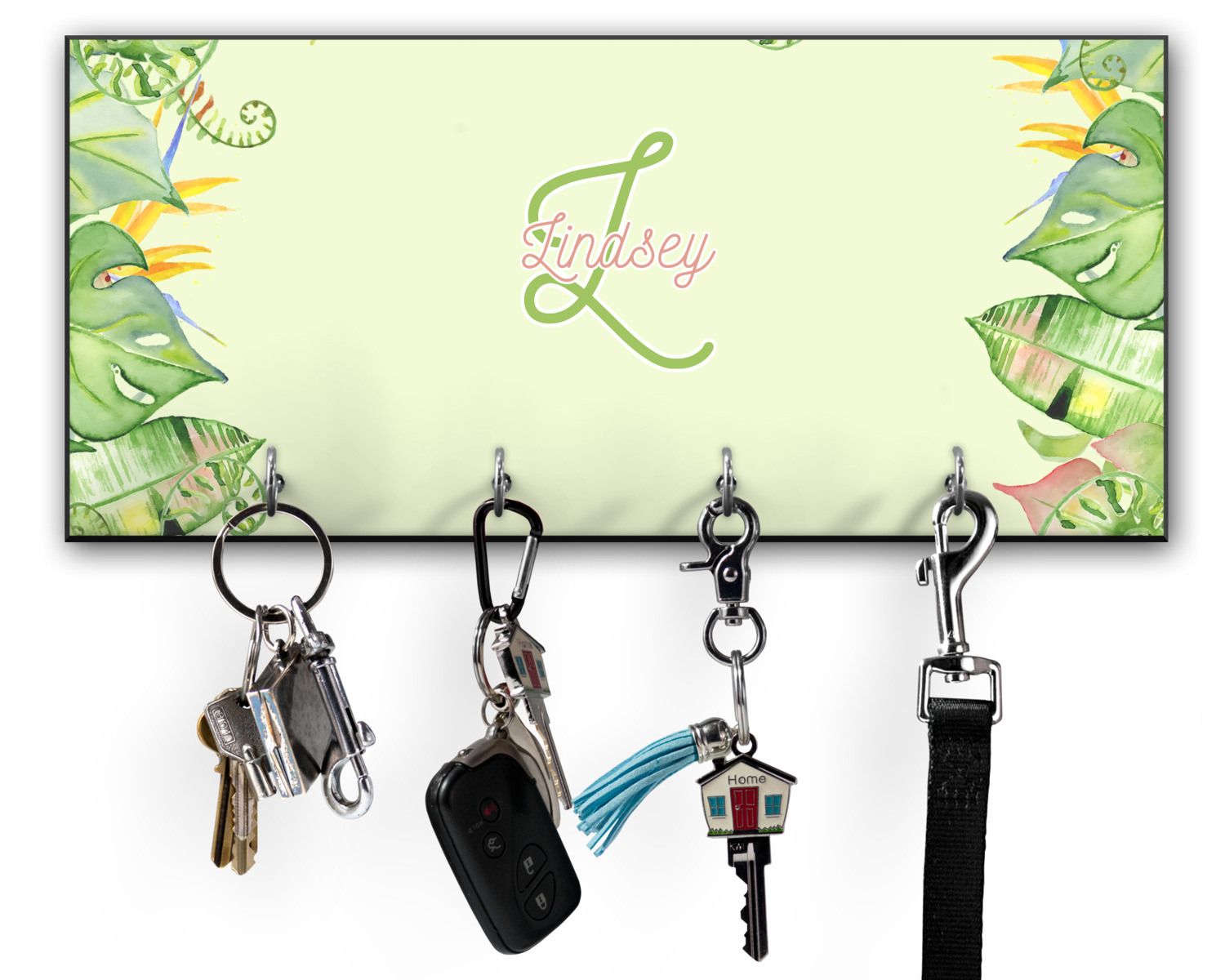 This 11" x 5" key hanger is made of sturdy wood and has four metal hooks lining the bottom. This is the perfect size for a family with several drivers. Not only can you hang keys on it though, but pet leashes and other small items. The board is black on the sides and back and is printed with the design of your choice on the front.