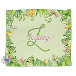 This design has a calming light green background. The foreground is filled with pops of dark green, lime, yellow, and a soft red. The tropical leaves really pop out at you as if they were real. The leaves are in a border or frame sort of formation surrounding a name and initial. This is a gorgeous design that looks a little bit different on each product it is on.