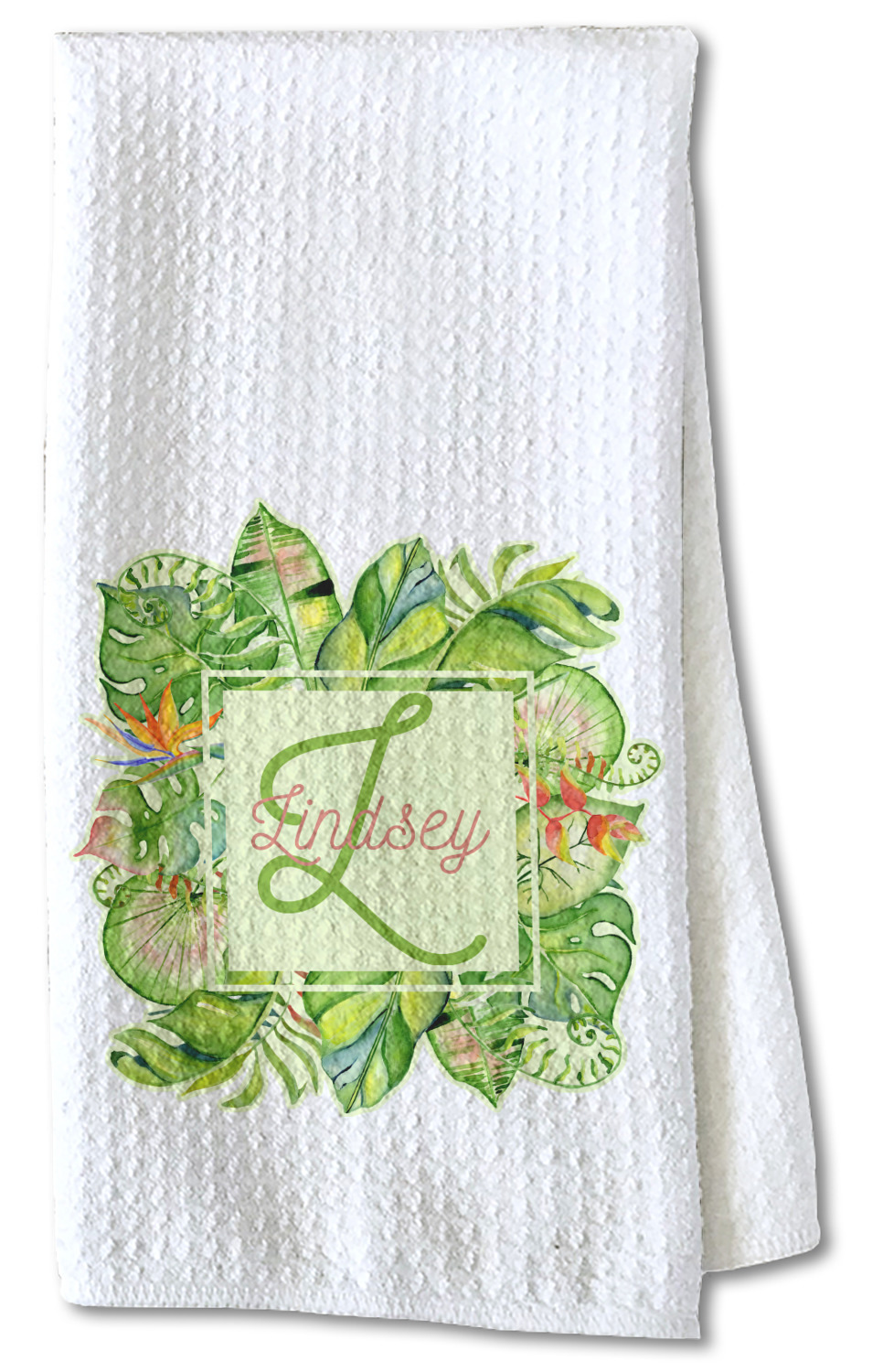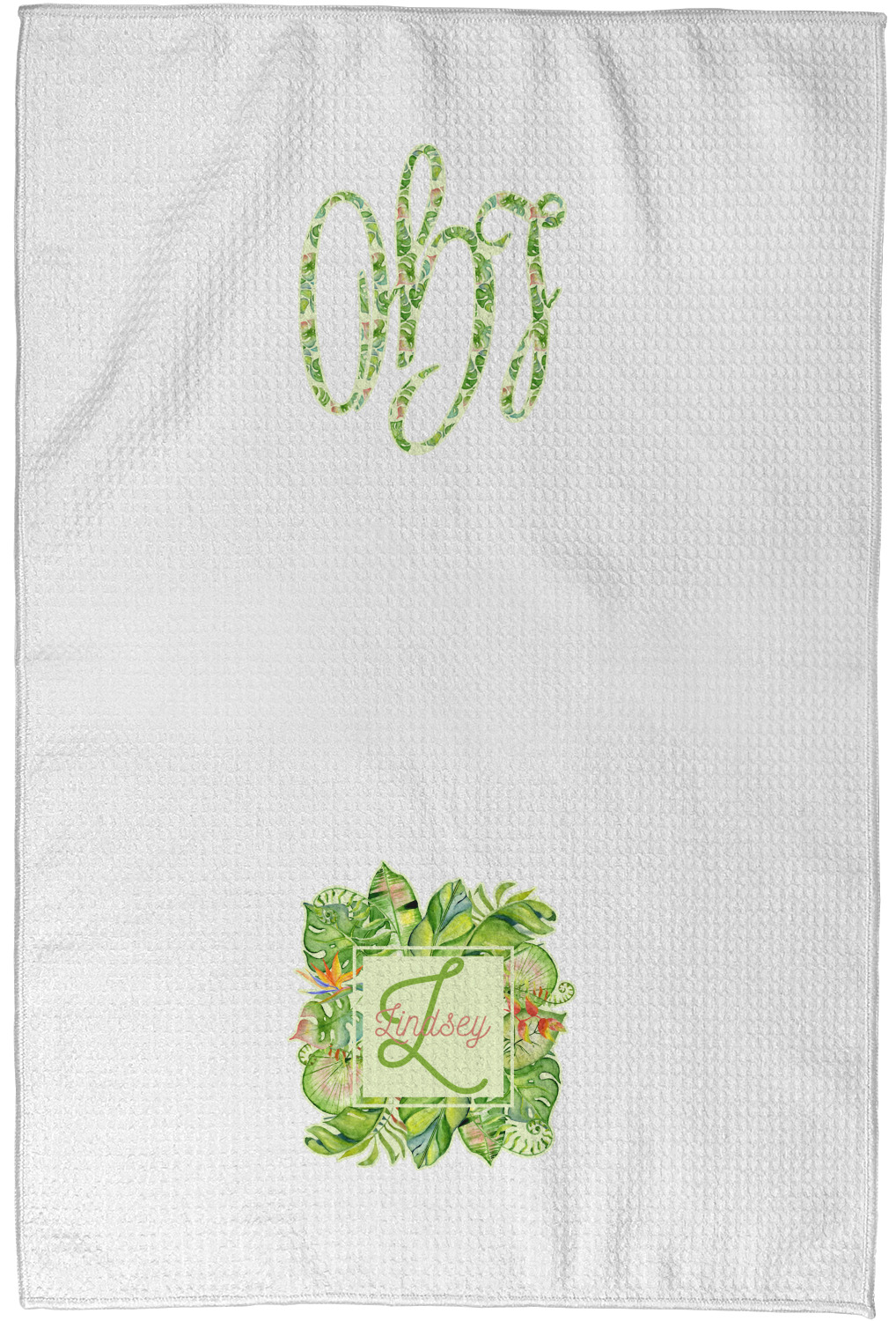 Each waffle weave kitchen towel is approximately 16 x 24 inches with your design printed on one side and the back is white.