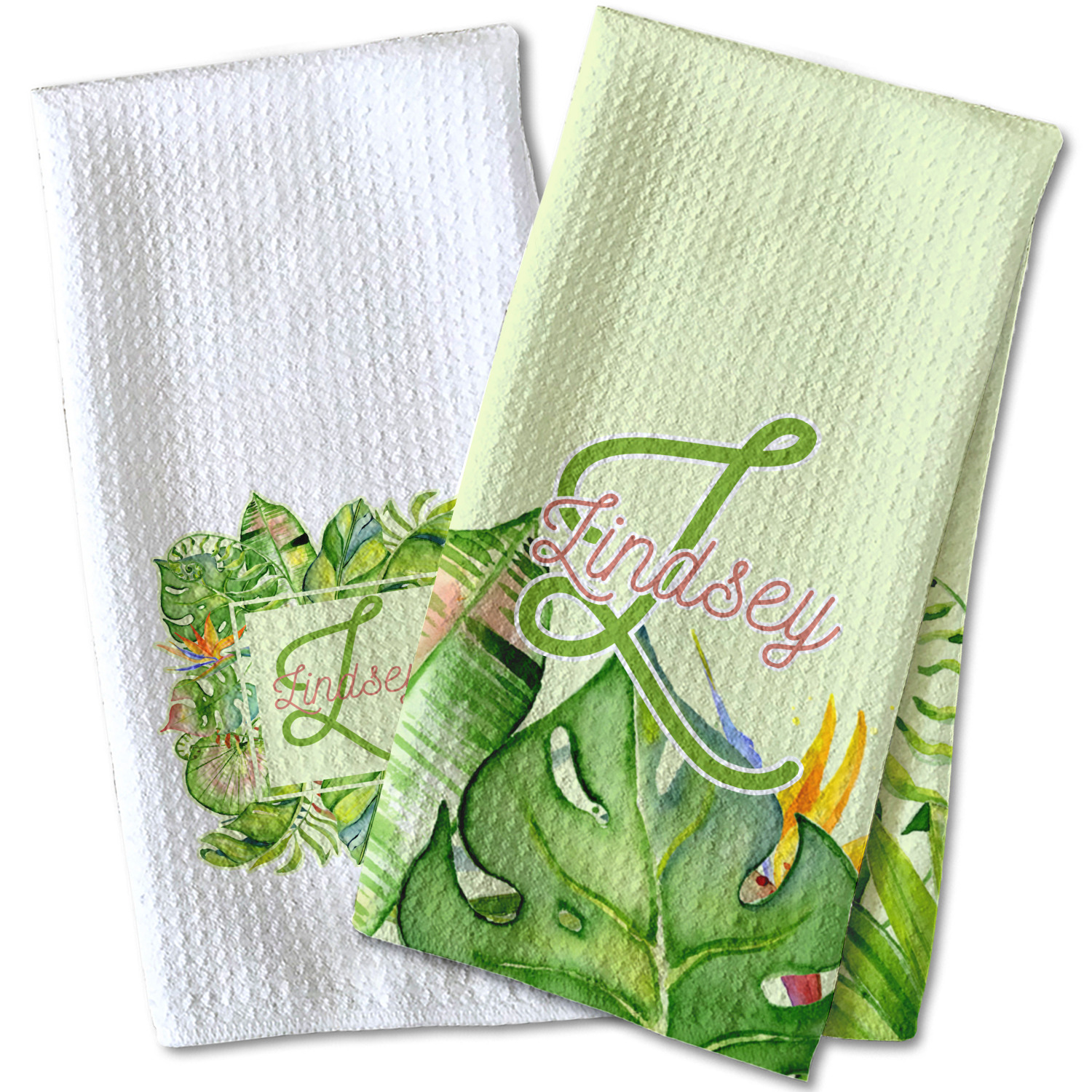 Each waffle weave kitchen towel is approximately 16 x 24 inches with your design printed on one side and the back is white.