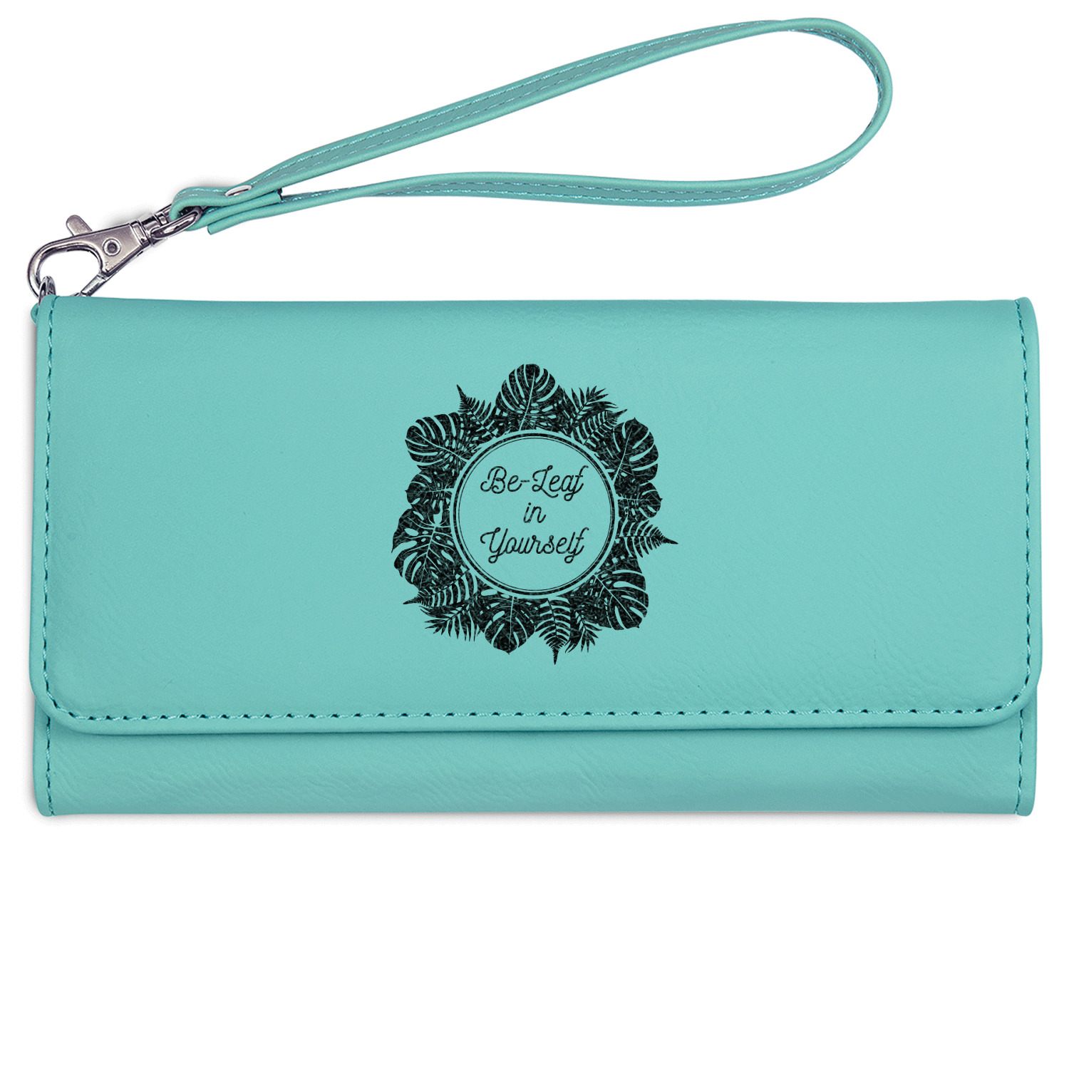 These personalized ladies leather wallets are available in 2 colors - rawhide / cognac and teal.