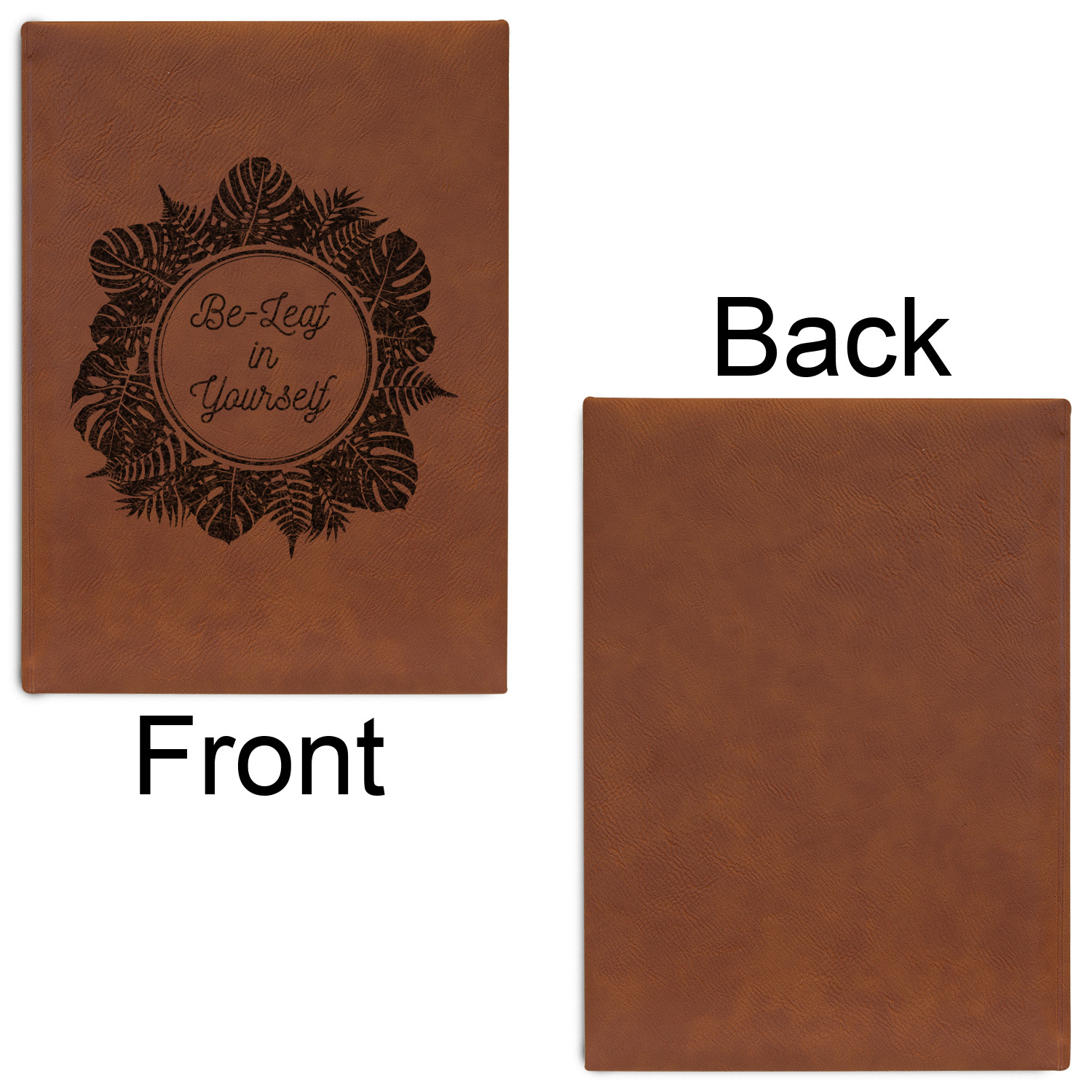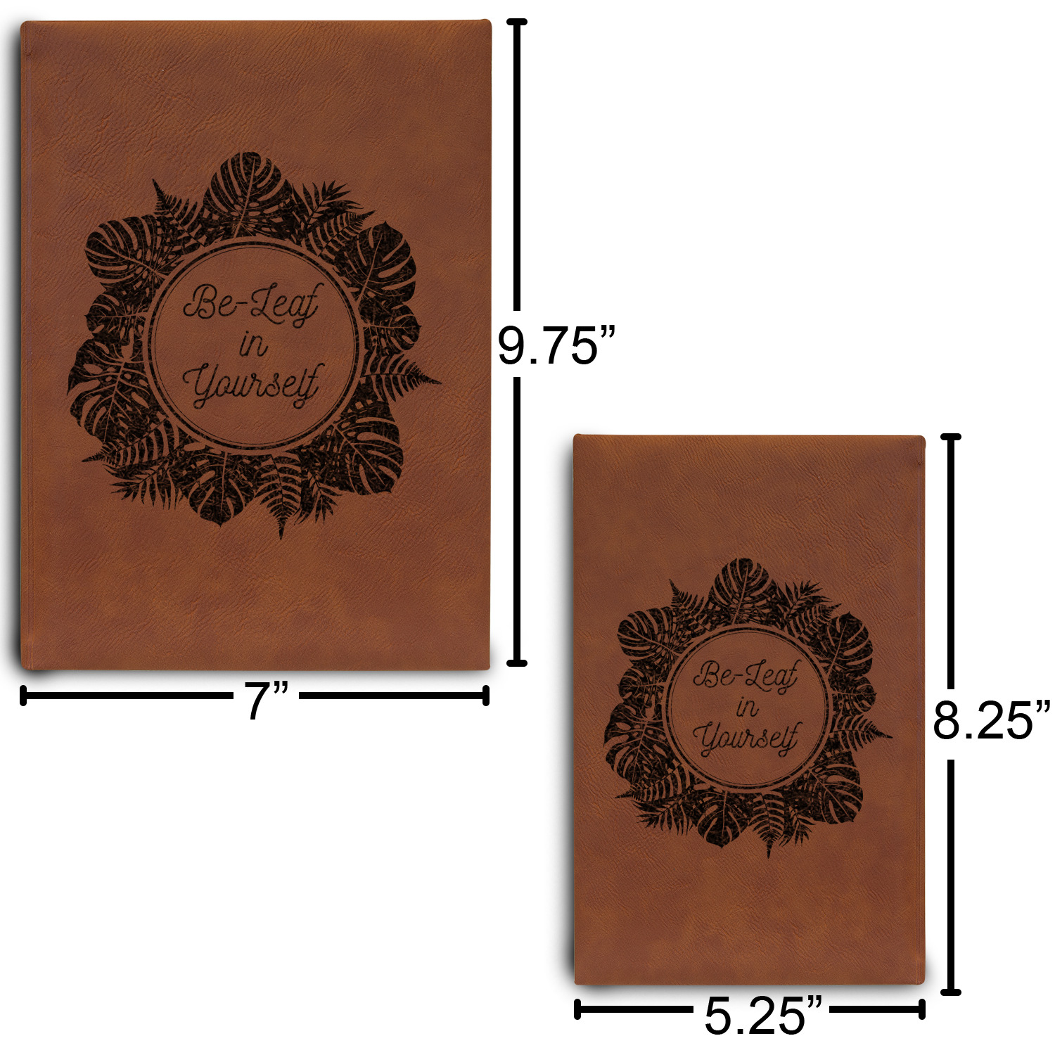 Available in two sizes - small at 8.25" x 5.25" and large at 9.75" x 7", these journal are the ideal size for purses and backpacks alike. Your personalized design is precisely laser engraved onto either the front, or the front and back of your new custom journal.