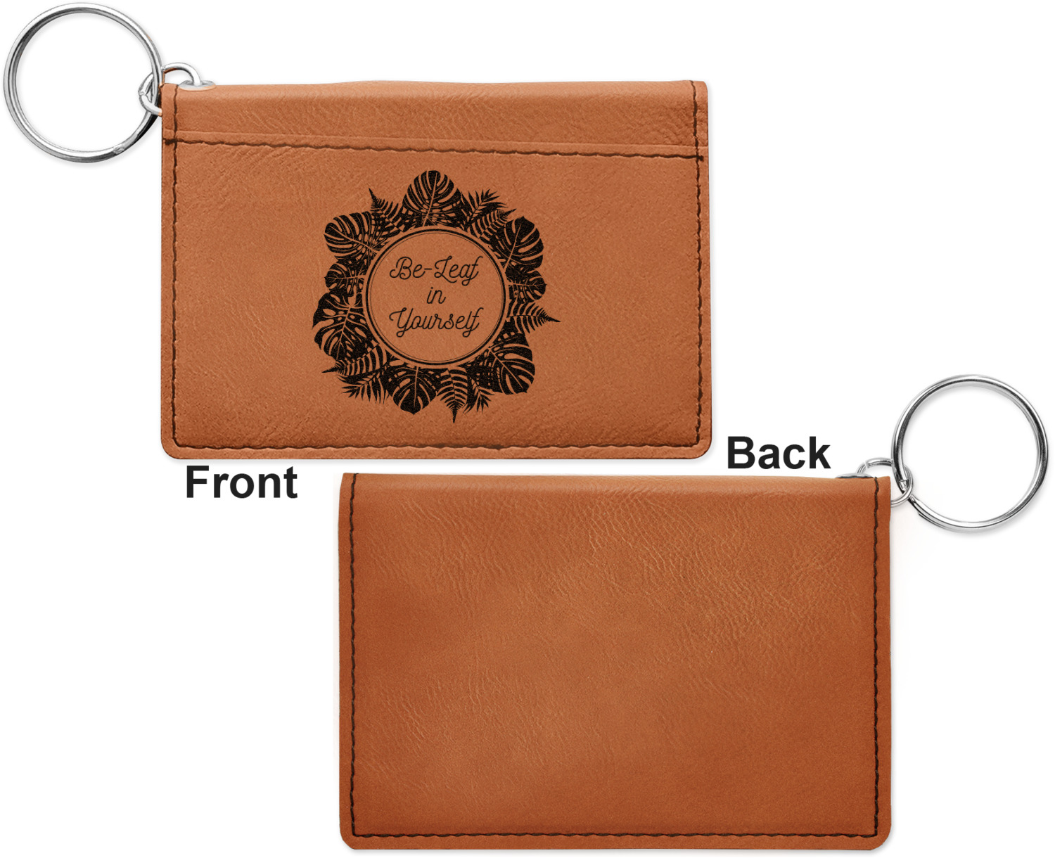 Interested in more leatherette or leather accessories? Check out our Apparel and Accessories department, where you can also personalize our phone wallets and money clips. If you're looking for customizable keychains to add to your keyring card holder, have a look at our round, heart, and diamond keychains. These keychains and more can be found in our Car and Automotive category.
