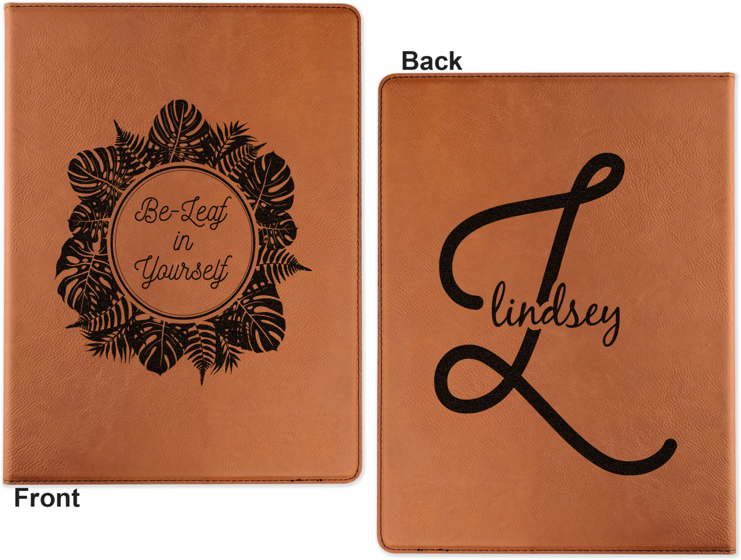 Go into our design center and start designing what will be laser engraved into your portfolio. Choose from our monograms, fonts, or quotes to find something that will fit your personality!