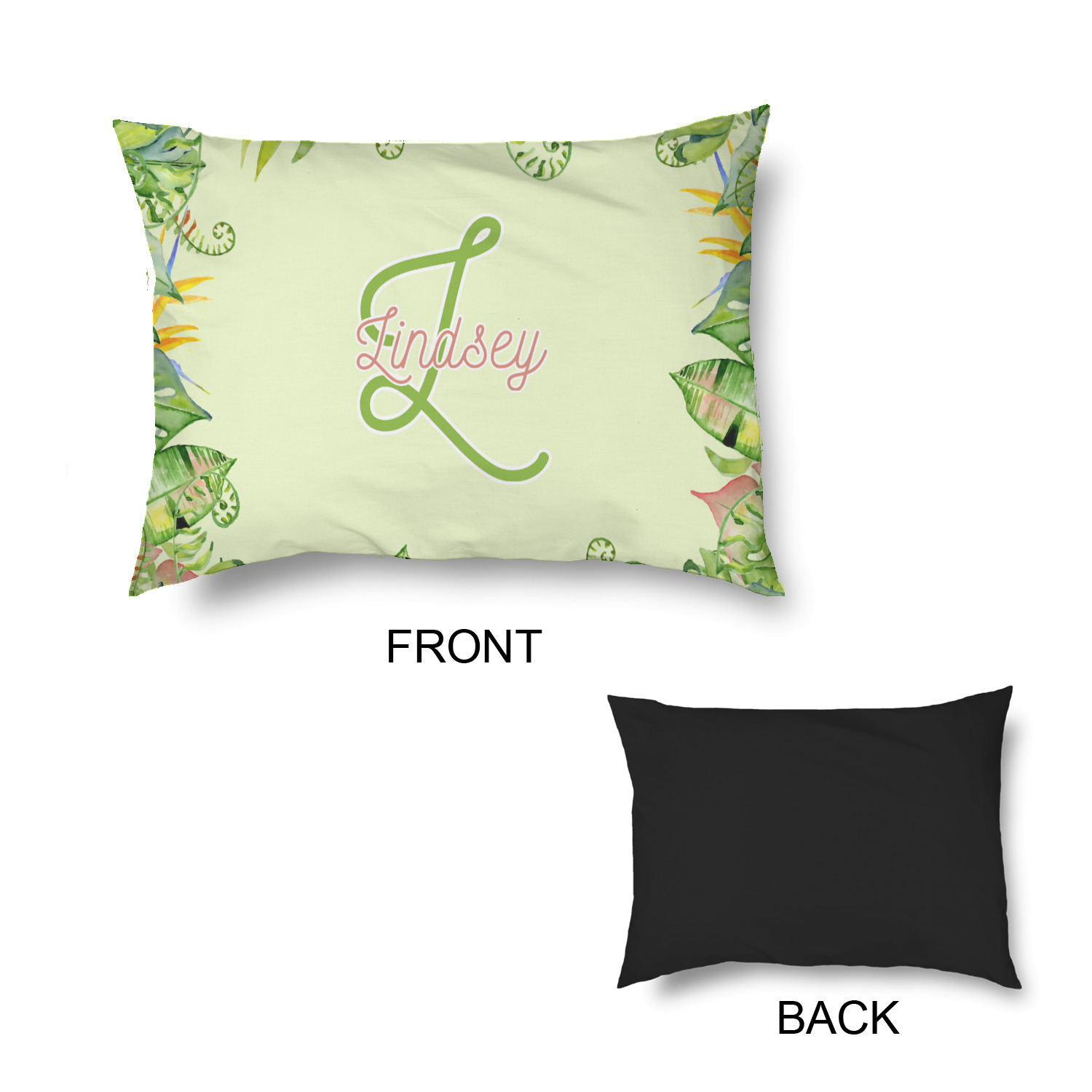 This design has a calming light green background. The foreground is filled with pops of dark green, lime, yellow, and a soft red. The tropical leaves really pop out at you as if they were real. The leaves are in a border or frame sort of formation surrounding a name and initial. This is a gorgeous design that looks a little bit different on each product it is on.