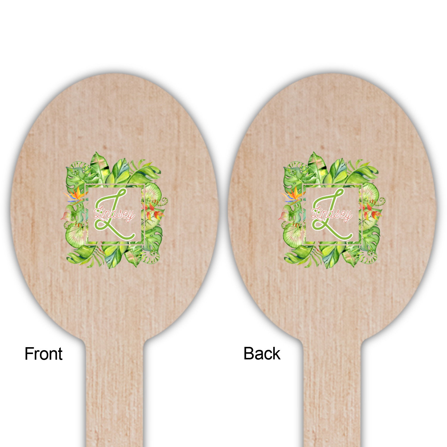 This design has a calming light green background. The foreground is filled with pops of dark green, lime, yellow, and a soft red. The tropical leaves really pop out at you as if they were real. The leaves are in a border or frame sort of formation surrounding a name and initial. This is a gorgeous design that looks a little bit different on each product it is on.