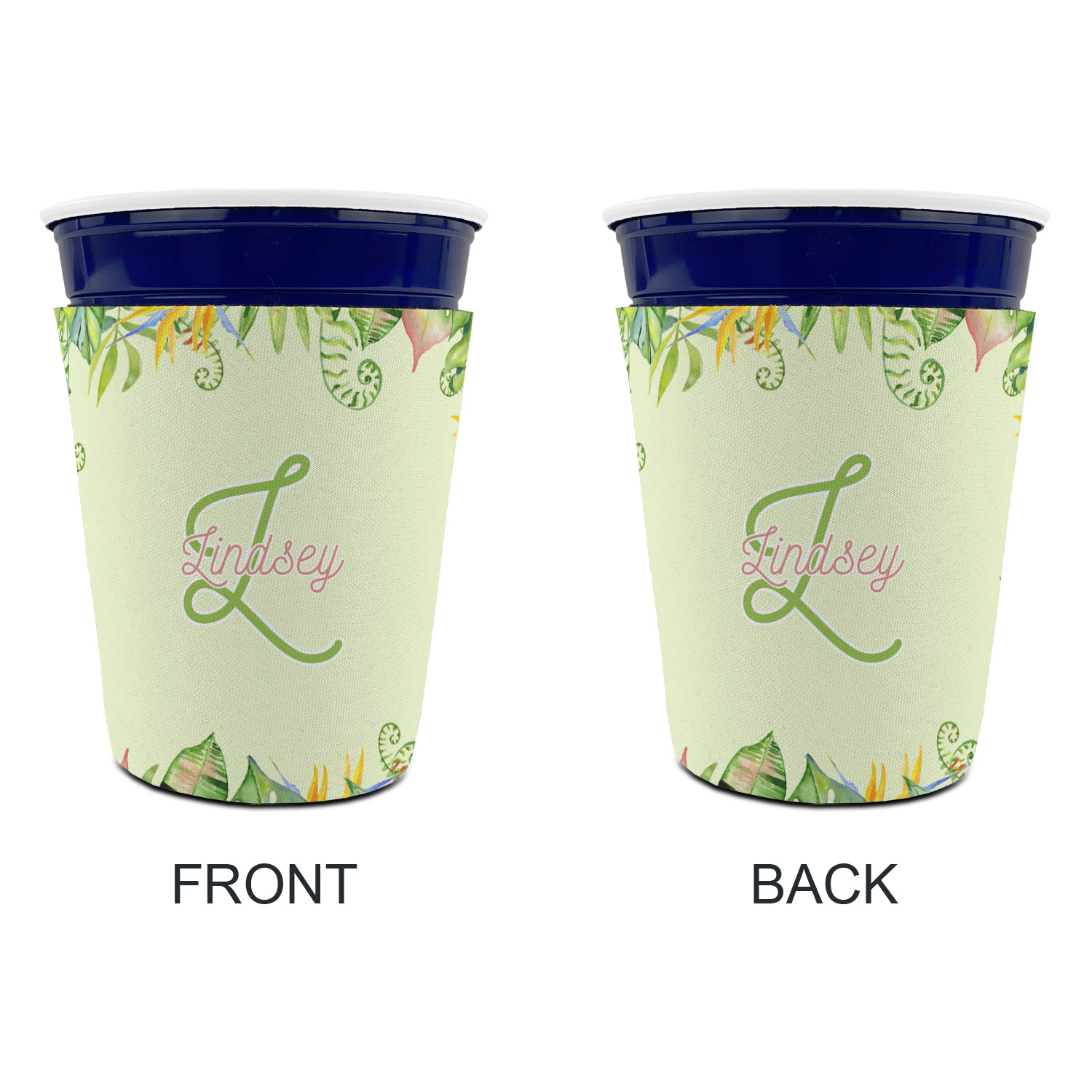 Made from neoprene with a polyester outer fabric and sewn seams, these premium quality party cup sleeves are very durable and will hold up to heavy use. They are available in 2 styles - with a bottom or just a sleeve to go around the outside of the tapered cup. The sleeve covers are about 4" tall and cover about 90% of the classic 16 oz. Solo cup.