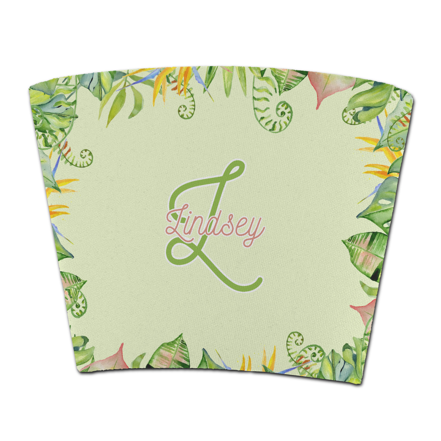 This design has a calming light green background. The foreground is filled with pops of dark green, lime, yellow, and a soft red. The tropical leaves really pop out at you as if they were real. The leaves are in a border or frame sort of formation surrounding a name and initial. This is a gorgeous design that looks a little bit different on each product it is on.