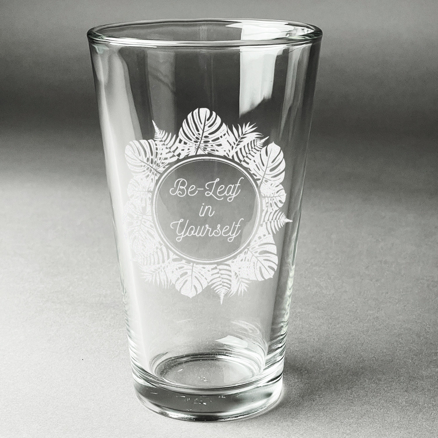 Available in a single glass or a set of 4 - each glass will be custom engraved with your design. Each glass holds 16 oz and measure 5.75"H x 3.5"W.