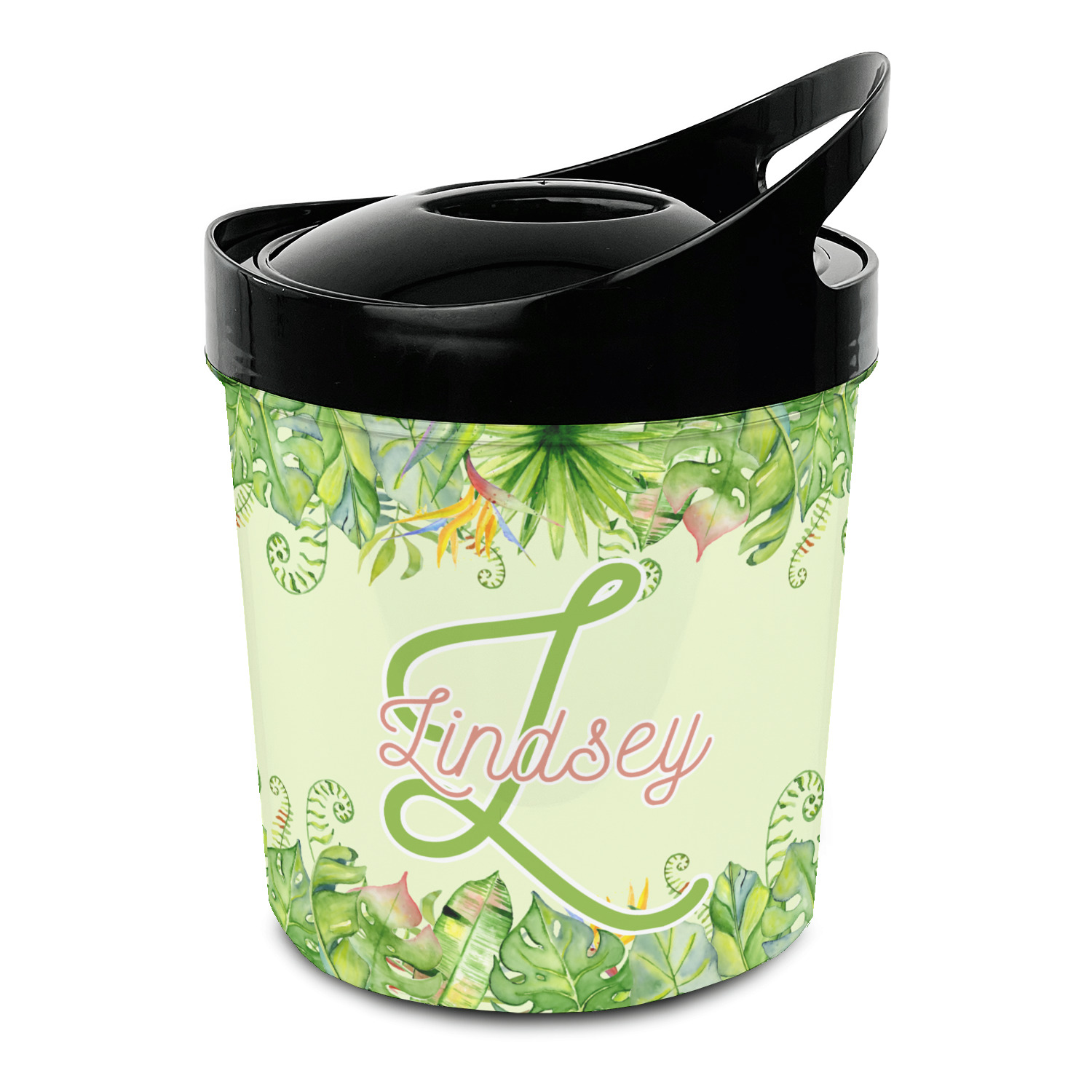 This design has a calming light green background. The foreground is filled with pops of dark green, lime, yellow, and a soft red. The tropical leaves really pop out at you as if they were real. The leaves are in a border or frame sort of formation surrounding a name and initial. This is a gorgeous design that looks a little bit different on each product it is on.