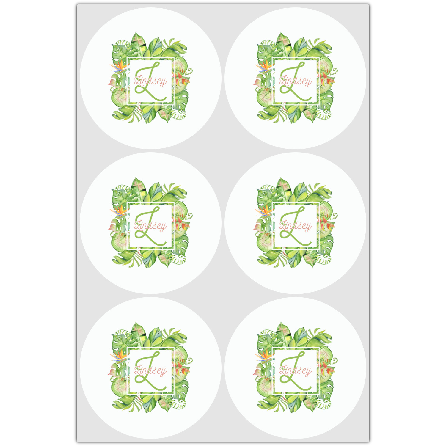 This design has a calming light green background. The foreground is filled with pops of dark green, lime, yellow, and a soft red. The tropical leaves really pop out at you as if they were real. The leaves are in a border or frame sort of formation surrounding a name and initial. This is a gorgeous design that looks a little bit different on each product it is on.