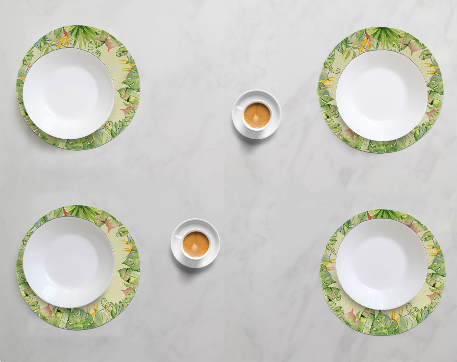 This design has a calming light green background. The foreground is filled with pops of dark green, lime, yellow, and a soft red. The tropical leaves really pop out at you as if they were real. The leaves are in a border or frame sort of formation surrounding a name and initial. This is a gorgeous design that looks a little bit different on each product it is on.