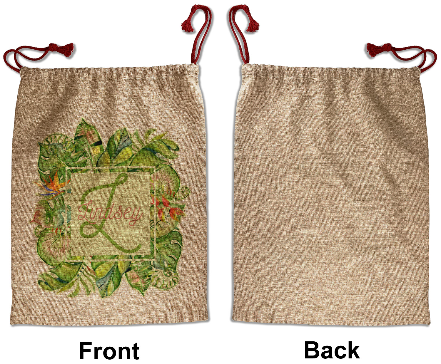 Our Santa sacks print your design on the burlap material giving it a nice rustic, natural design! The burlap material is also machine washable and wrinkle-free, so feel free to fold and store out Santa bags until the next time you need it! Secure your gifts with our red accent drawstring ties at the top of the sack so the mystery of your gift stays a surprise until Christmas day. We offer two types of printing- one side partial print or double-sided partial printing. Design and personalize your own Santa sack in time for the holidays!