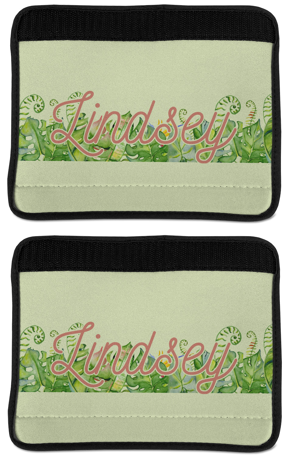 Made from neoprene, our seat belt strap covers wrap around the belt itself and have a Velcro tab for easy attachment and closure. The belt's edges are trimmed with a black polyester for a secure finish. Each cover is 9.5 by 7 inches when open and 9.5 by 2.5 inches when closed. We print your personalized design on the face of the seat belt pad.