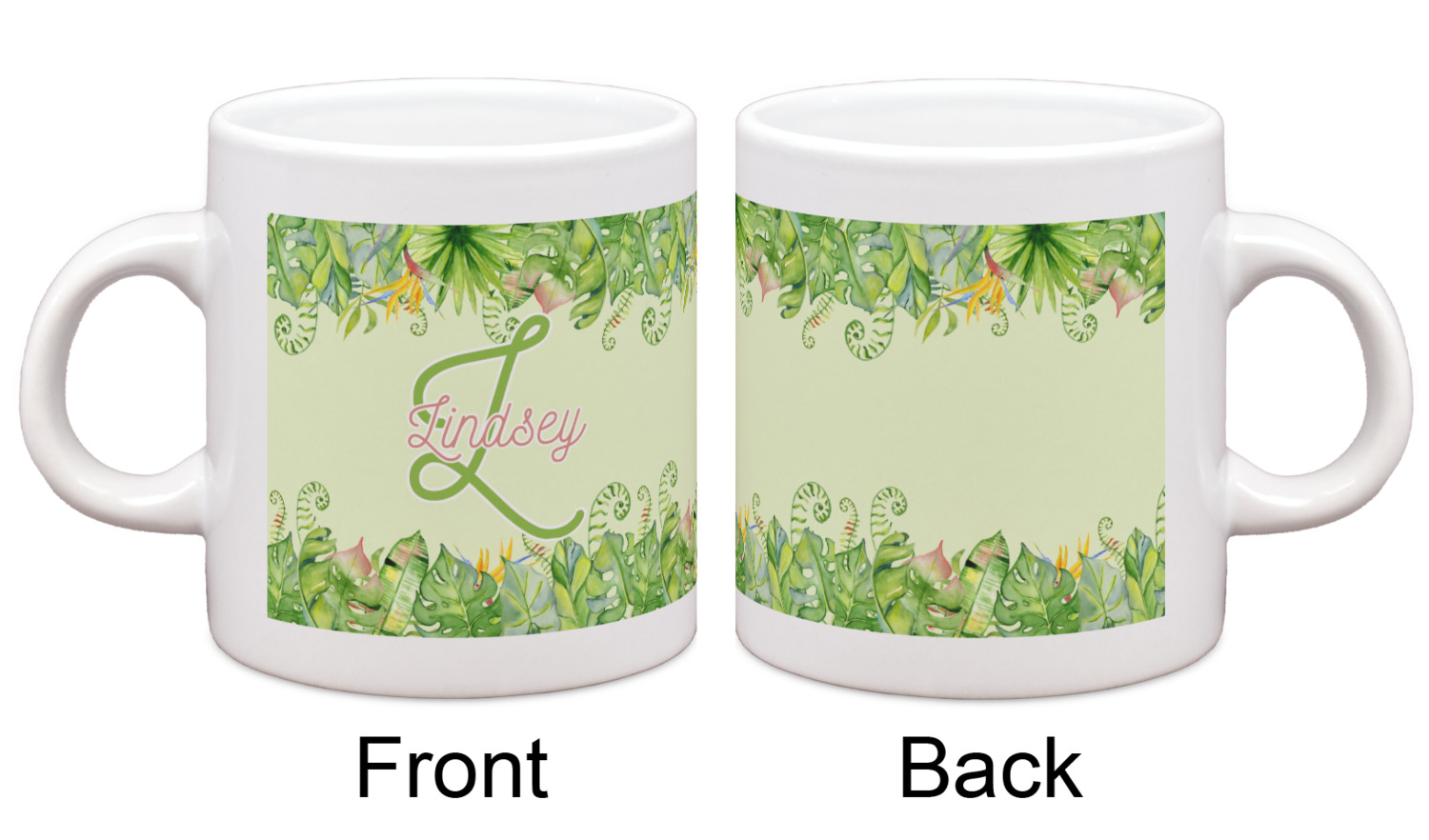 Each of our espresso mugs is a ceramic material sure to keep your drink warm. Personalize one cup for yourself, or order a set of 4! Its the perfect little gift for any coffee lover! We carry two sizes for you to personalize - 3 oz. (approx. 3.25" x 2.325" x 2.625") or 6 oz. (approx. 4" x 2.9" x 2.9"). Our 3 oz. mug is perfect for that single shot espresso while our 6 oz. mug can be your next favorite cappuccino cup holding two shots of espresso!
