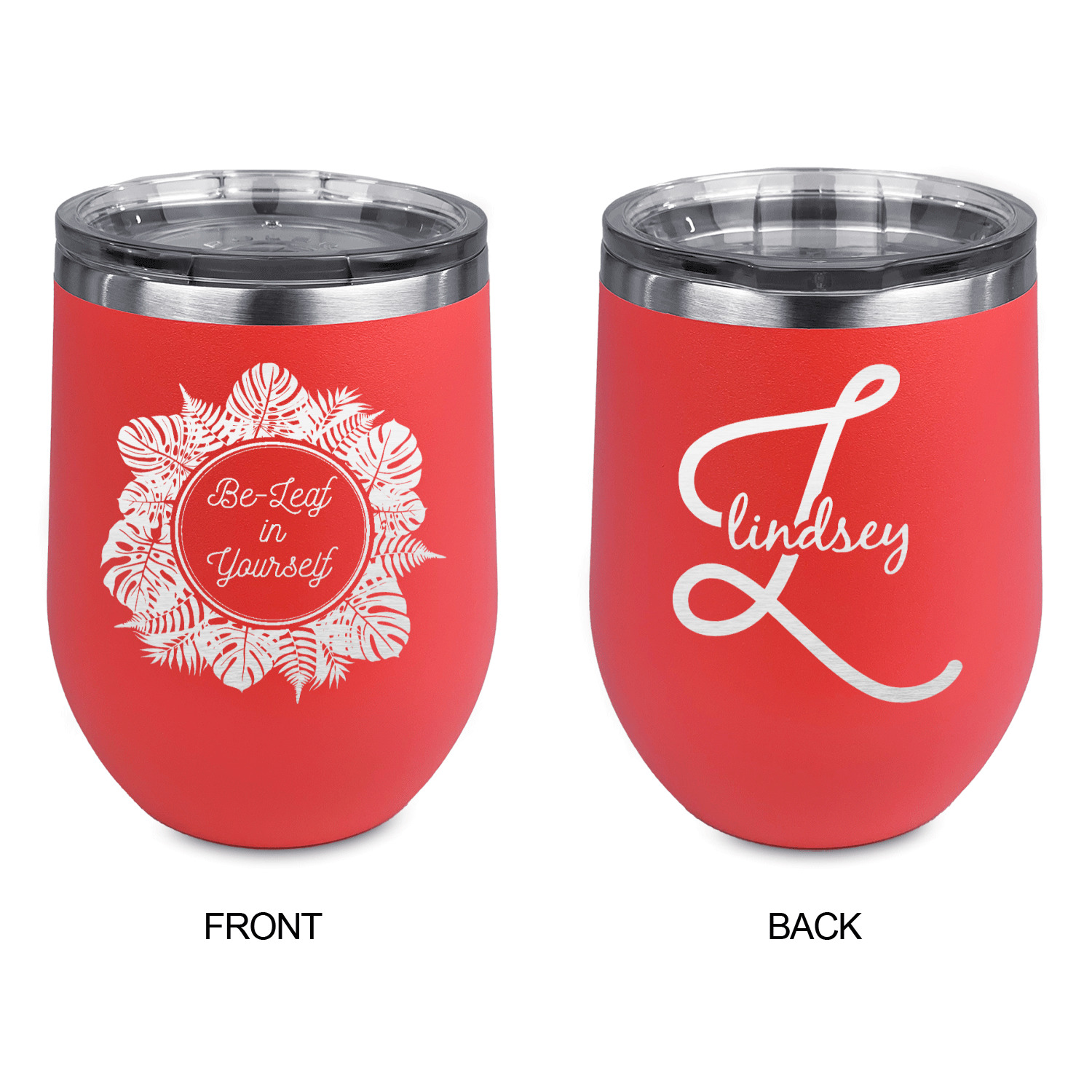 Design your wine tumbler with a cool graphic or quote. Even put your initials or monogram! These cups are laser engraved, which looks extra sharp on the metal tumbler.