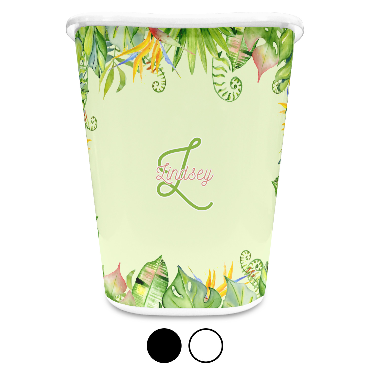 You can choose to purchase these decorative wastebaskets in either a white or a black color that will show on the base and the upper rim. Your customization is printed on a high-gloss, fine-quality vinyl adhesive, and you can choose to either have this adhesive applied to one side only or to both sides. As such, this plastic wastebasket can be single-sided or double-sided, depending on your creative vision. Your customization is printed using durable inks, making the design waterproof and resistant to fading over time.