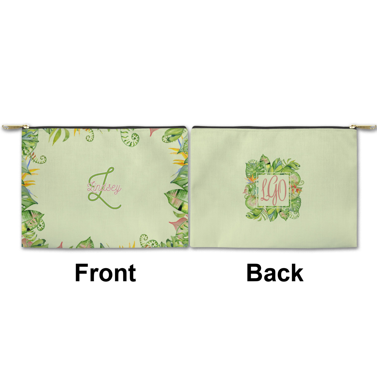 You can design both the front and the back of the pouch - same design, two complementary designs or two totally different designs - the choice is yours! We offer many different personalization styles i.e. name, name & initial, monograms - so the choice to personalize is also yours.