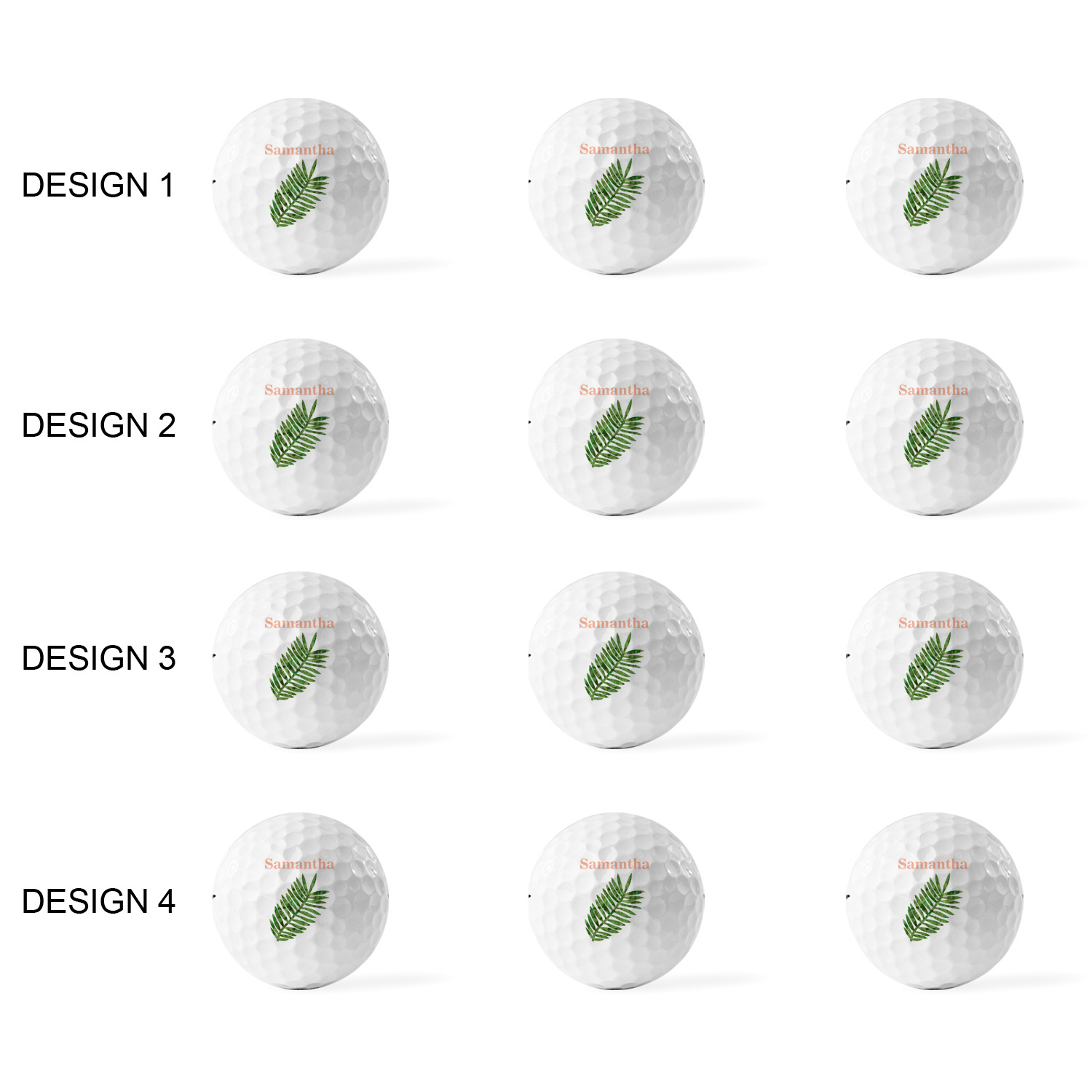 Printed in a 7/8" circle on each ball, you can customize these with our design studio or use your own designs. For a set of 3 you can design each one individually, for a set of 12 you will be able to use 4 unique designs and will receive 3 balls with each design.
