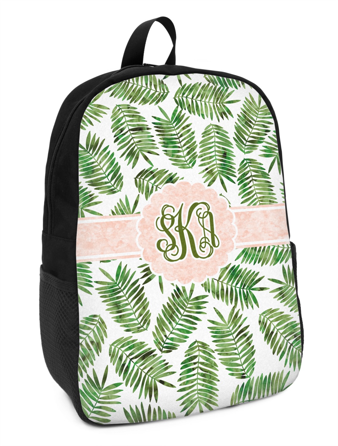 These small backpacks are made of a durable black canvas material with your personalization right on the front. The two shoulder straps are padded and easily adjustable. The bag itself measures at about 11" W x 15" H x 5" D. It's the perfect size for elementary aged kids or adults who want a smaller backpack. On the top of the bag you will find a handle to hang or carry your backpack by as well as a large zipper closure to keep all of your belongings safe inside. On each side of your backpack is a mesh pocket for a small item or water bottle. Inside your backpack you will find a spacious area with a small zipper pocket and a padded laptop slot that will fit up to a 13" laptop (13" being very snug). This is the perfect bag for any student that needs a couple books and their laptop with them at all times. It also works great as a carry on for traveling!
