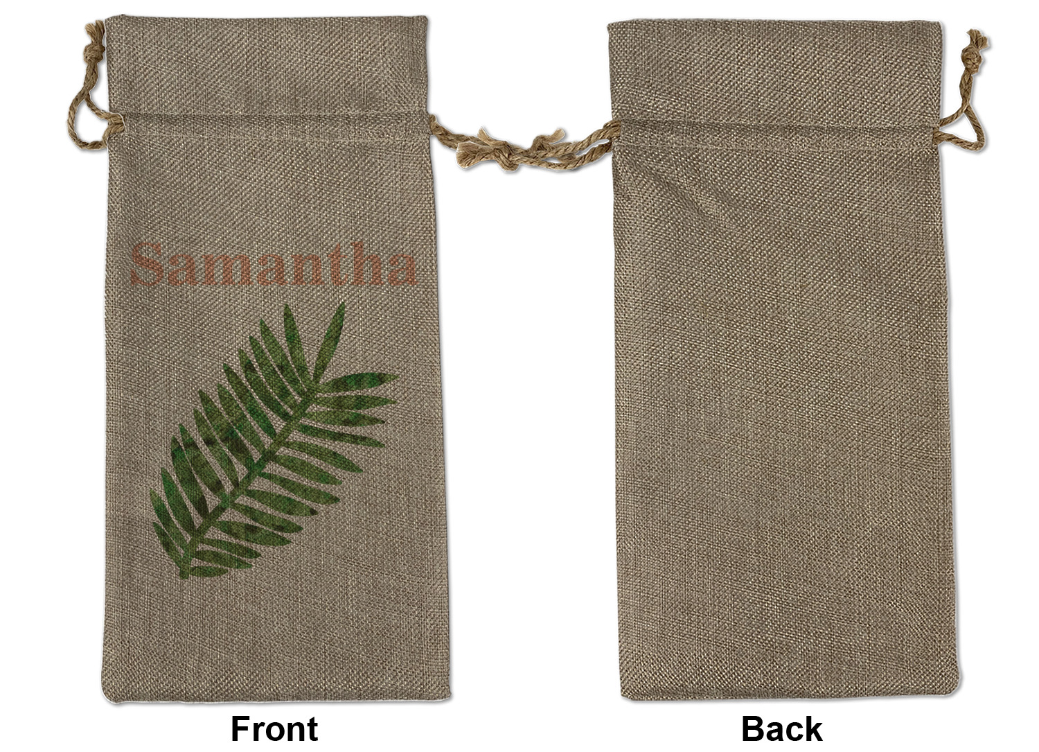 We sell our Burlap Gift Bags in 3 variant sized bags. Made with burlap polyester, each personalized bag can be secured with a twine drawstring pull. Your custom design is available to print on one side or both sides - completely up to you! The sizes of the bags measure approximately 4.5" x 6.5" for the smallest size, 6.5" x 8.0" for the medium size, and 6.5" x 13.5" for the large-sized bag.