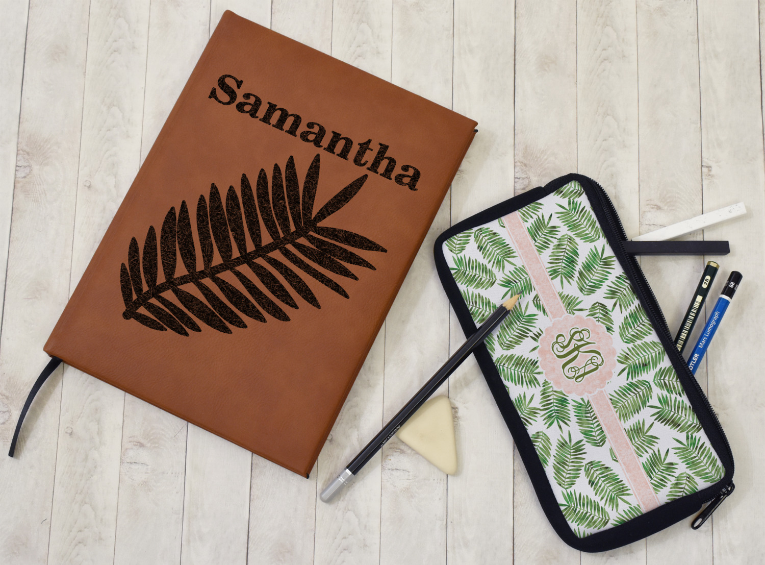 The faux leather covers are a rich cognac / rawhide color and can be customized with your design. From a simple name or monogram or a logo to a detailed mandala - the choice for customization & personalization is truly yours. Customize one of our designs or upload your own.