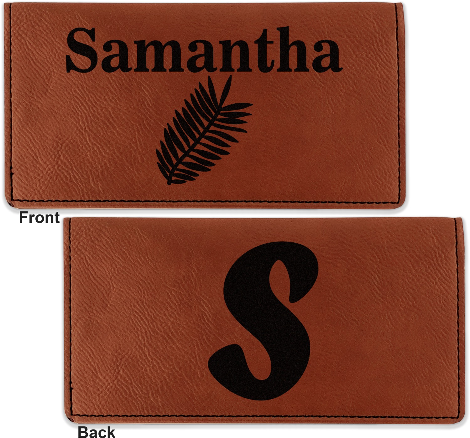 Go into our design center to start personalizing. Your checkbook cover will be laser engraved, making the graphic or text a black color. Choose a fun saying, monogram, or font to go on your checkbook cover. You have the opportunity to do it double or single sided.