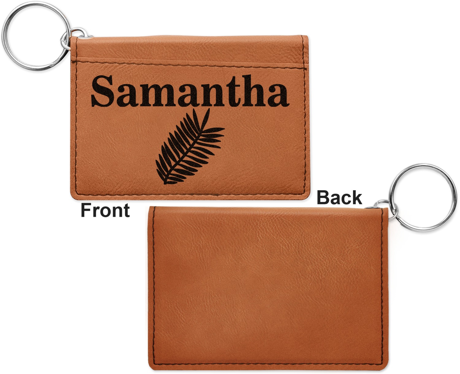 Interested in more leatherette or leather accessories? Check out our Apparel and Accessories department, where you can also personalize our phone wallets and money clips. If you're looking for customizable keychains to add to your keyring card holder, have a look at our round, heart, and diamond keychains. These keychains and more can be found in our Car and Automotive category.