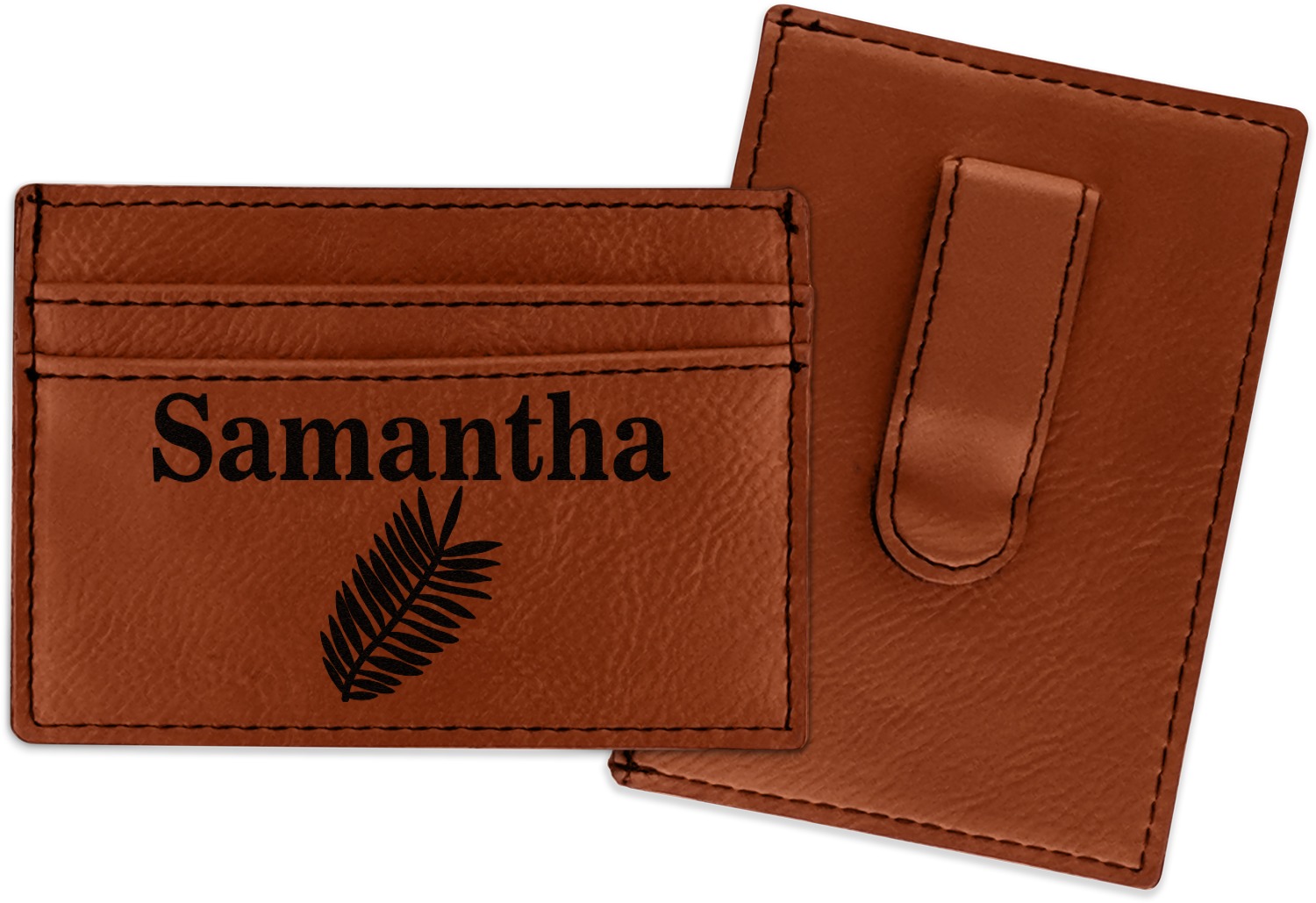 Made from a smooth brown leatherette material, these money clip wallets are the perfect accessory. They measure at approximately 4" x 2.75". On one side there is a money clip where you can slip in your cash. On the other side are three card slots for an ID and credit card or two. The money clip wallet will be laser engraved with your design on the side with the credit card slots. The graphic will come out as a black color.