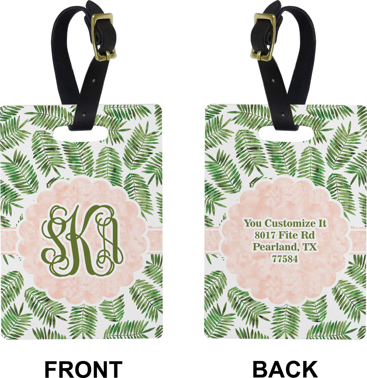 These cute luggage tags are made of a fiber-reinforced, UV-resistant plastic, making them waterproof and durable enough for both everyday use and the rugged adventures of any traveler! A leather strap with holes and a buckle is included with your purchase and can be used to attach your custom luggage tag to any suitcase, backpack, or duffel bag. You can design these travel tags as you wish; your customization will be displayed across the front, while the back will show as little or as much personal information as you want.