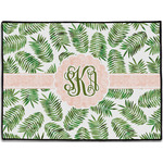 The background of the main design is filled with thin tropical leaves scattered about. The leaves are filled with a dark green watercolor texture. The ribbon and scalloped frame are filled with a light peach watercolor texture. The monogram in the middle gives an extra feminine touch to this design.