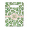 The coordinating design has the same leafy background and peach ribbon. In place of the framed monogram, there is a large initial and name filled with a dark green watercolor texture.