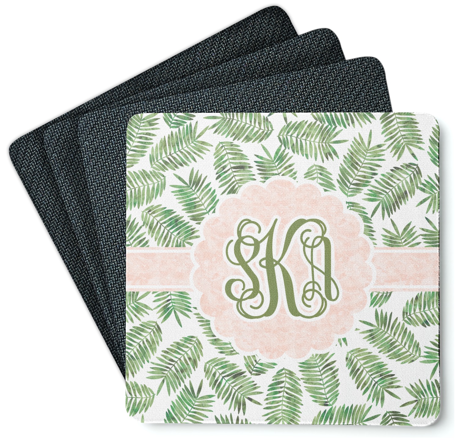 These drink coasters have a smooth, polyester top and a textured, rubber backing on its bottom. The non-slip rubber backing underneath works to keep any spills at bay. At 4 by 4 by 0.25 inches thick, these custom coasters are a suitable size for most drinkware. Your personalization is displayed atop the face of the cup coaster. We sell these rubber coasters in two different shapes: square and round. You can buy each shape as singulars or as a set of 4.
