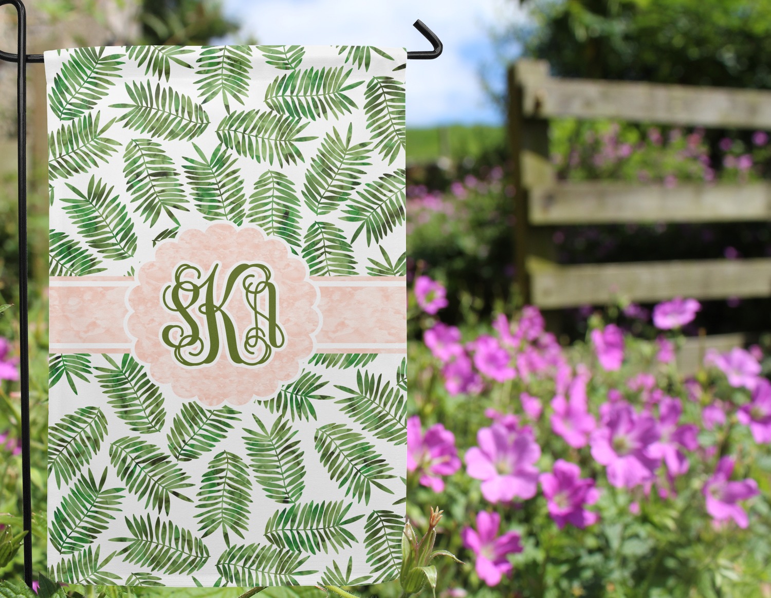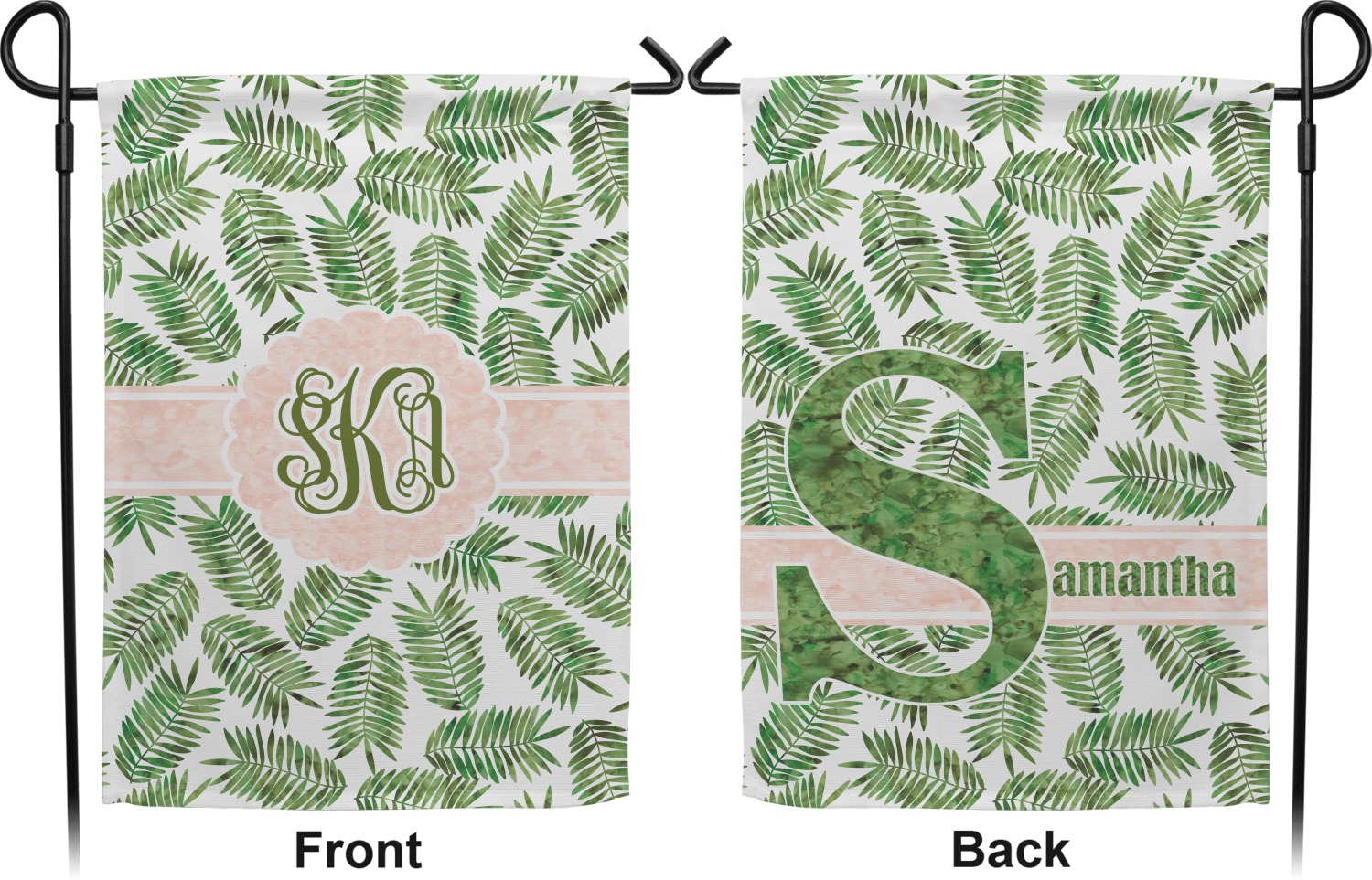 These custom garden flags are made of a durable, double-ply, polyester weave, allowing them to withstand the elements year round. The small flags measure at approximately 12 by 18 inches. The large flags measure out to 28 by 37 inches. You can order these decorative flags with your customization printed on the front only, or the front and back.