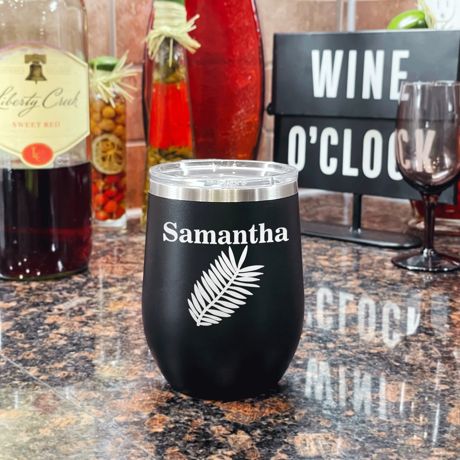 Design your wine tumbler with a cool graphic or quote. Even put your initials or monogram! These cups are laser engraved, which looks extra sharp on the metal tumbler.