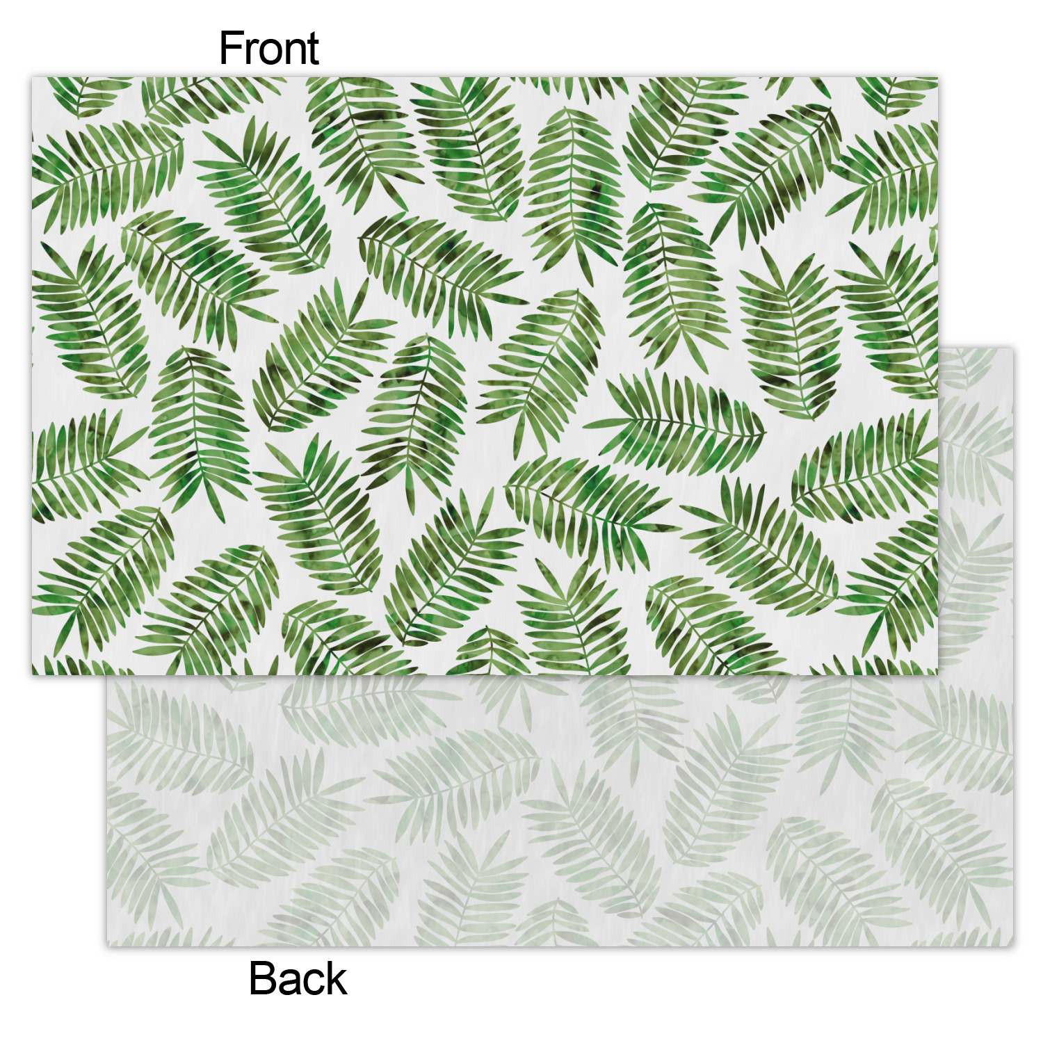 The background of the main design is filled with thin tropical leaves scattered about. The leaves are filled with a dark green watercolor texture. The ribbon and scalloped frame are filled with a light peach watercolor texture. The monogram in the middle gives an extra feminine touch to this design.