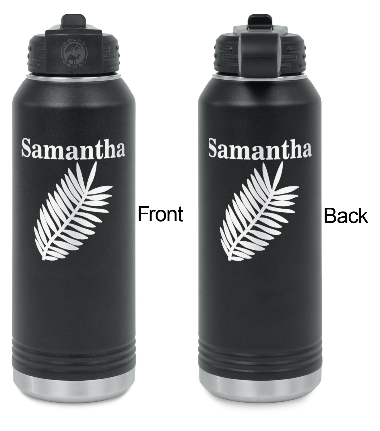 Our laser engraved stainless steel water bottles are designed for on the go lifestyle. These water bottles are perfect for the gym, the office, traveling, camping, hiking etc.