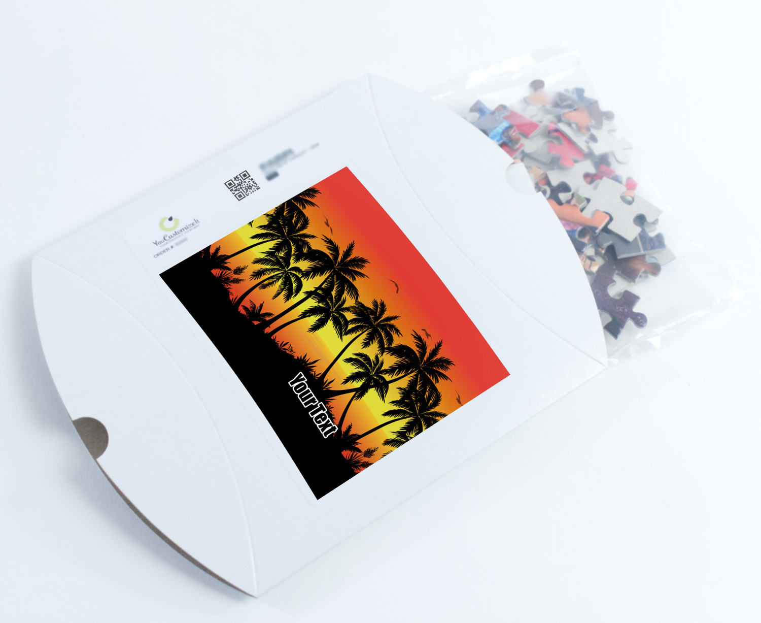 You can also upload your logo or art that you or your kids drew. To create more challenging jigsaw puzzles, you can create a pattern from with your logo or artwork. You can also add other elements such as text or personalization.