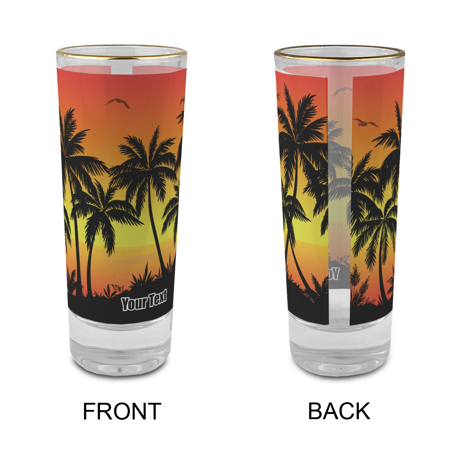 These glass shooter glasses are printed in full color with the design of your choice. These are a tall shooter 2 oz size and stand 4" tall. The print is a full wrap design to boldly display your personalization.