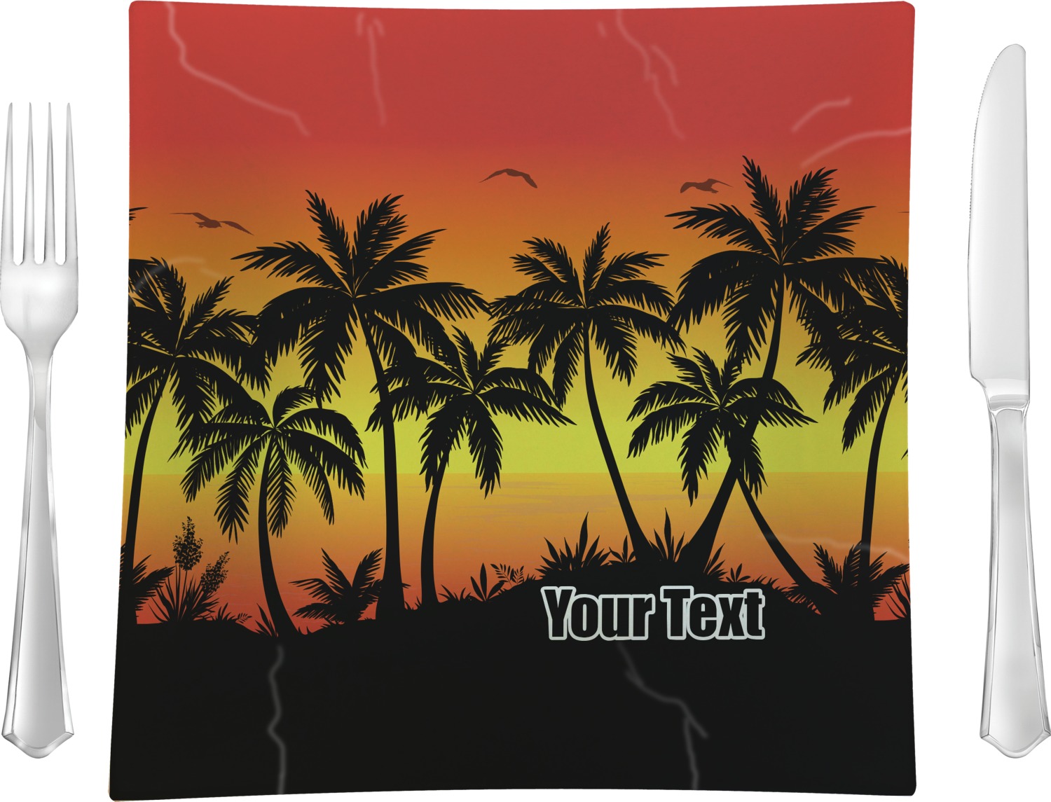 Jump into our design center to get going. Pick other backgrounds or fonts. Even pick out a monogram or graphic to go with your tropical sunset. If you ever need any help in our design center feel free to give us a call or hop on our online chat. We are always happy to help.